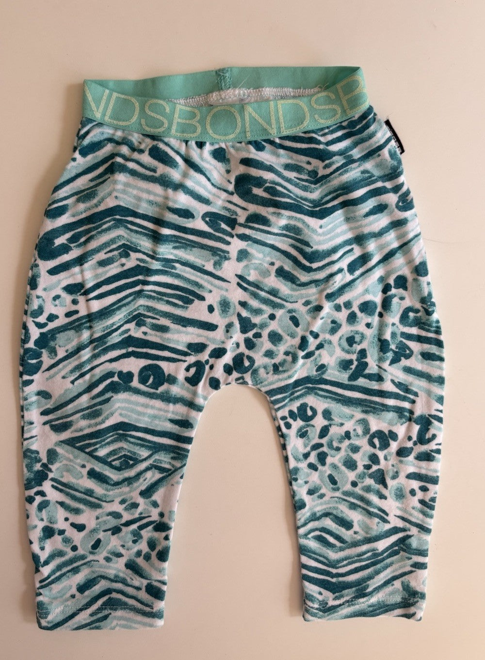 Bonds baby size approx. 3-6 months green white patterned leggings, VGUC