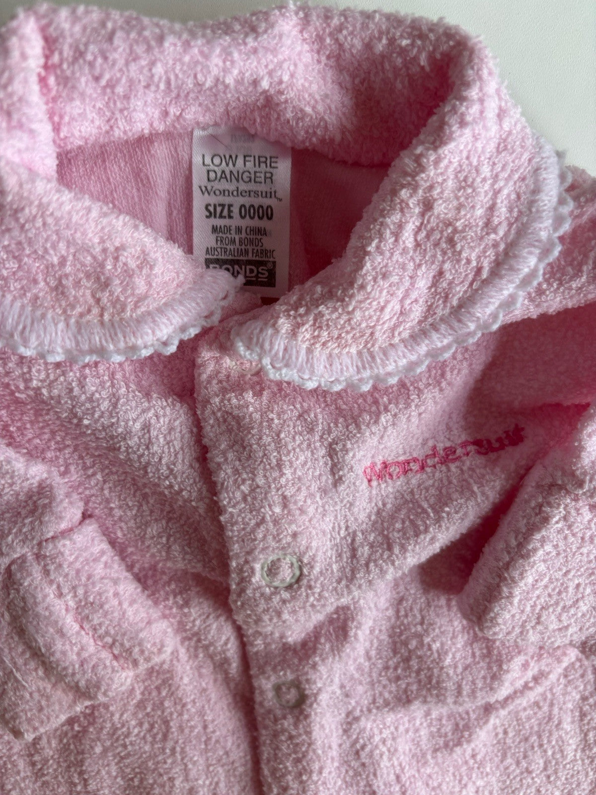 Bonds baby size newborn pink wondersuit Terry towelling collared, VGUC