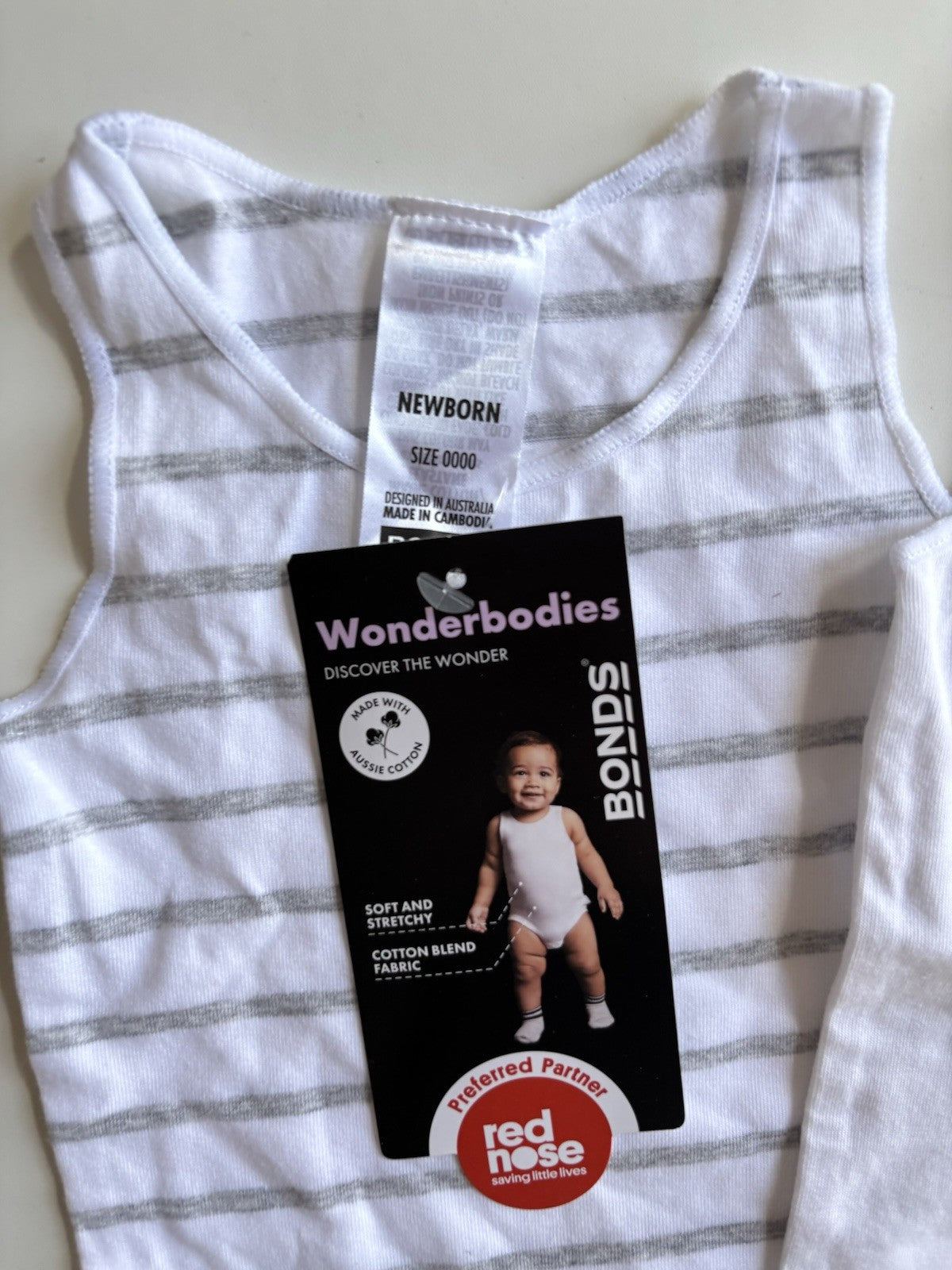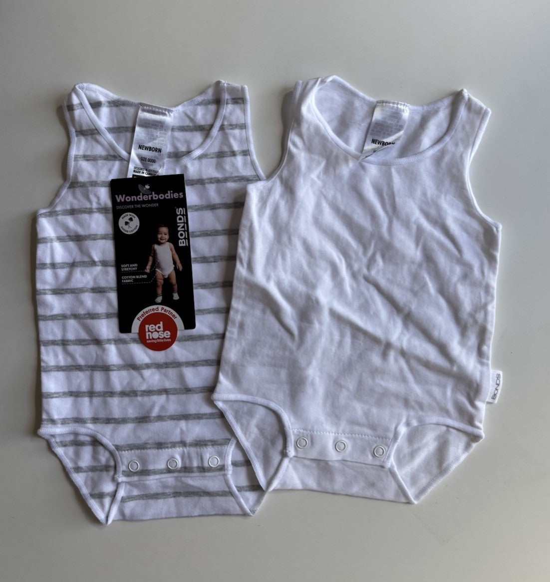 Bonds baby size newborn x2 grey white tank bodysuit singlets, BNWT