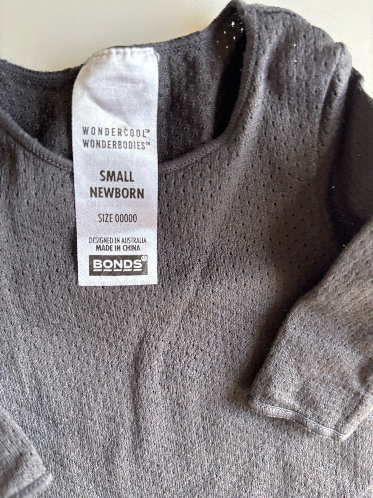 Bonds baby size prem small baby wondercool wonderbodies black bodysuit, VGUC