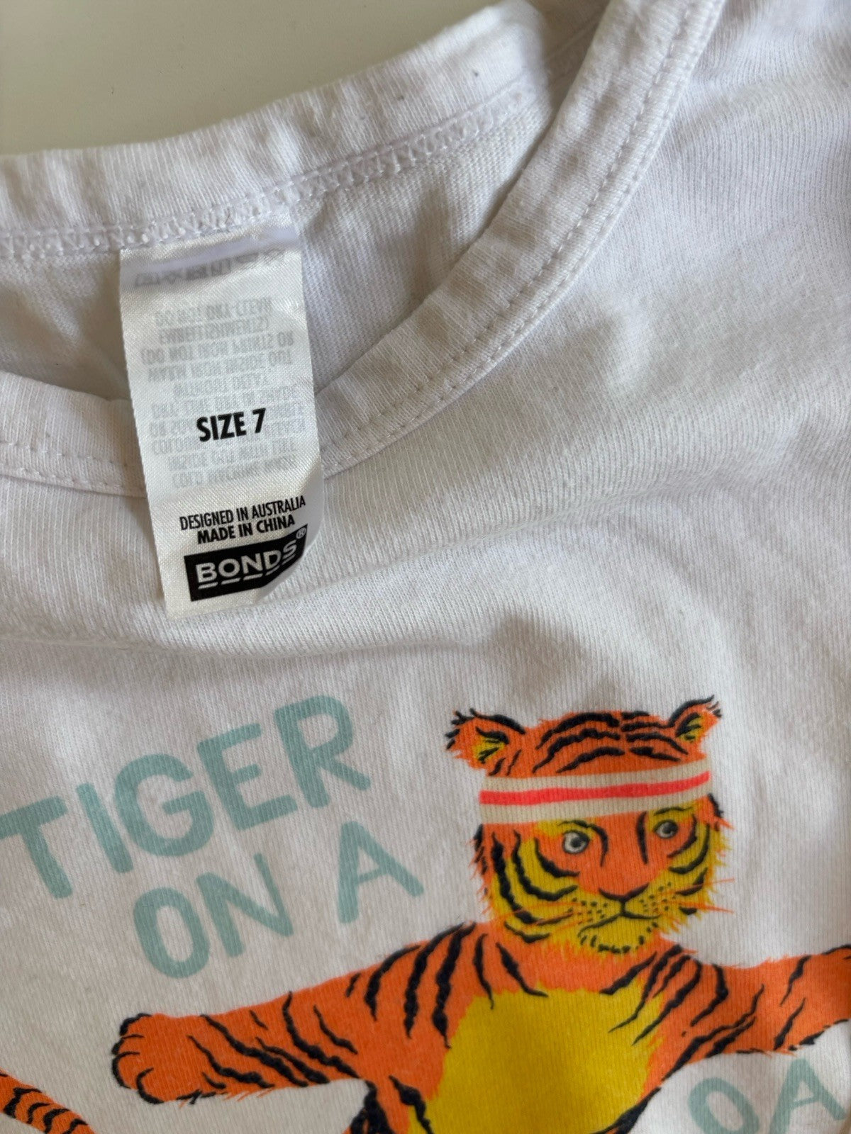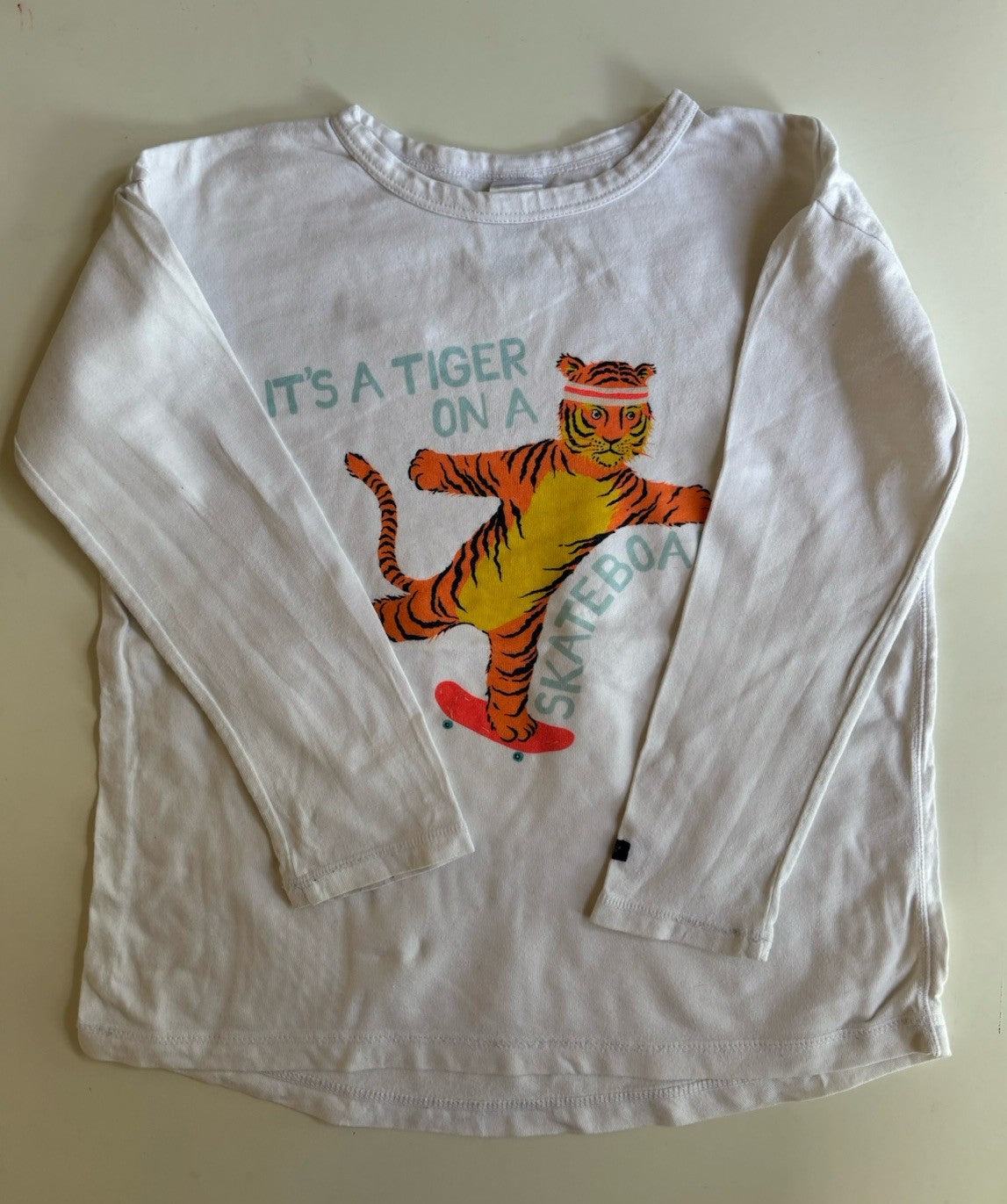 Bonds kids boys size 7 white tiger skateboard long sleeve tshirt, VGUC
