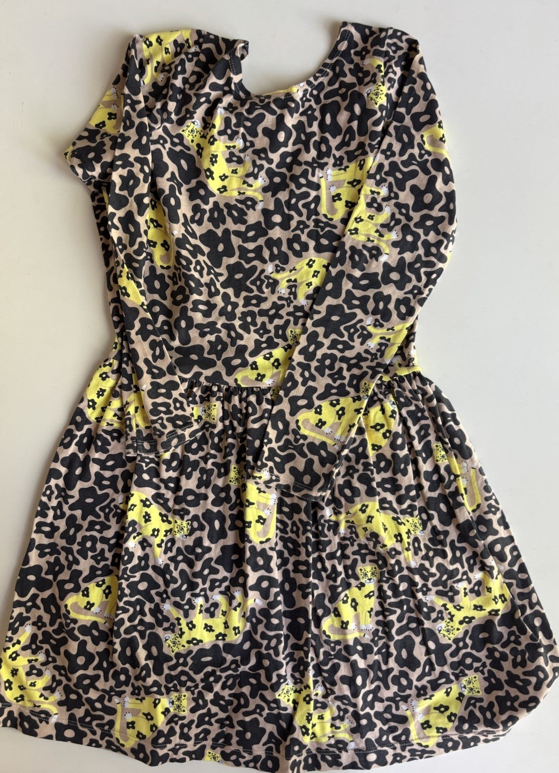 Bonds kids girls size 10 brown black leopard print long sleeve dress, VGUC