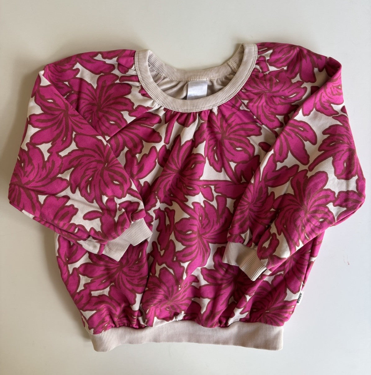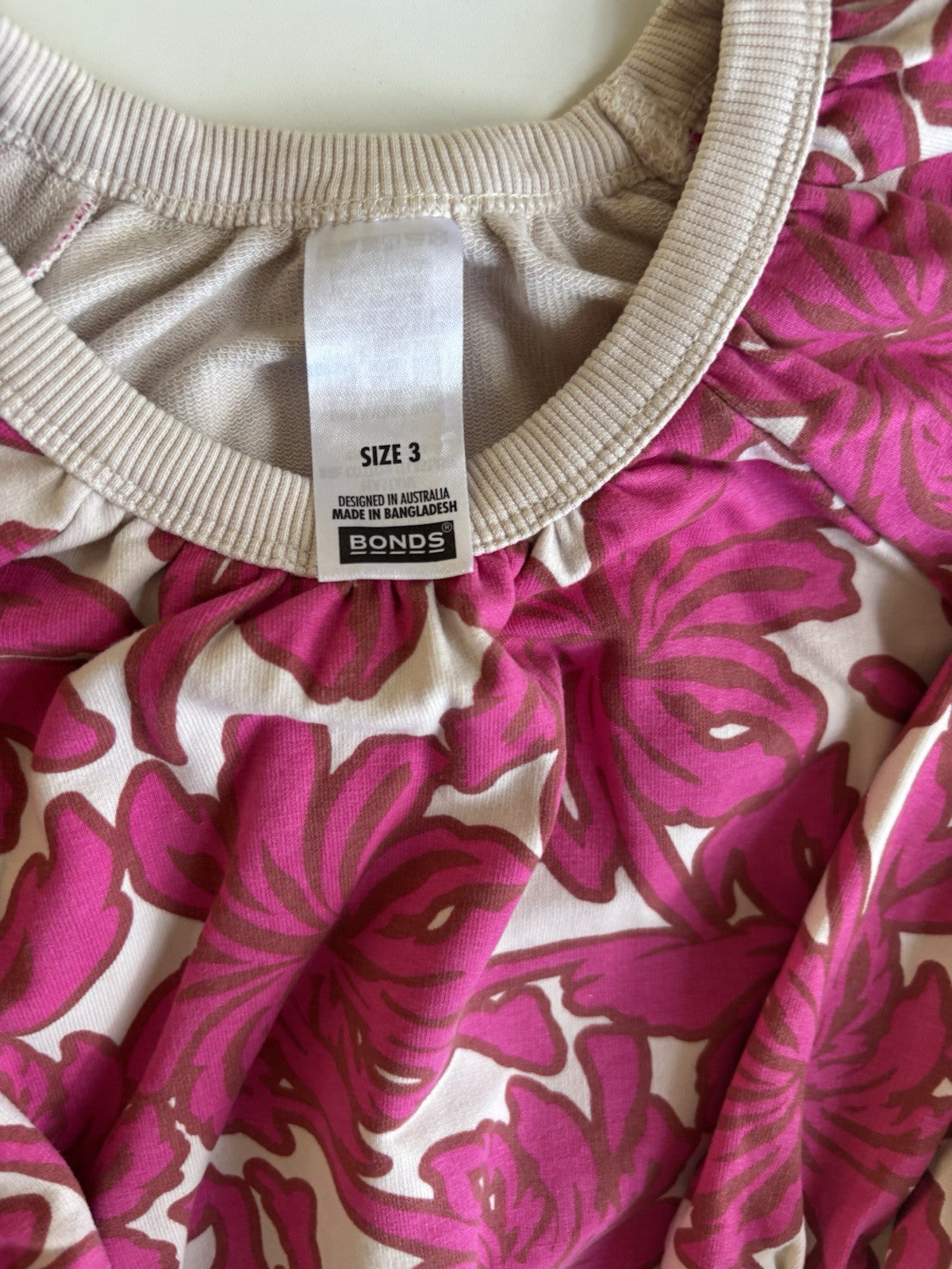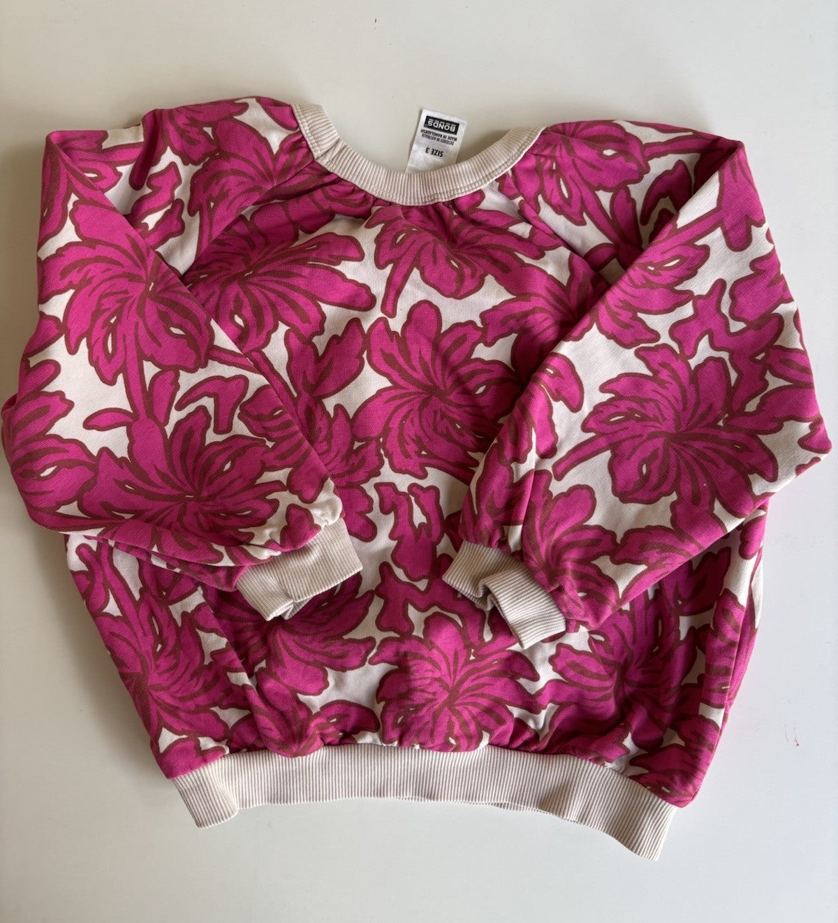 Bonds kids girls size 3 pink ferns pullover jumper, VGUC