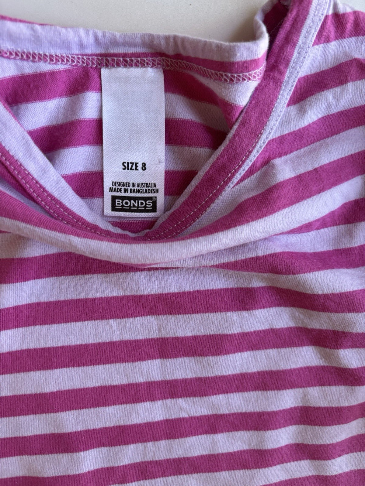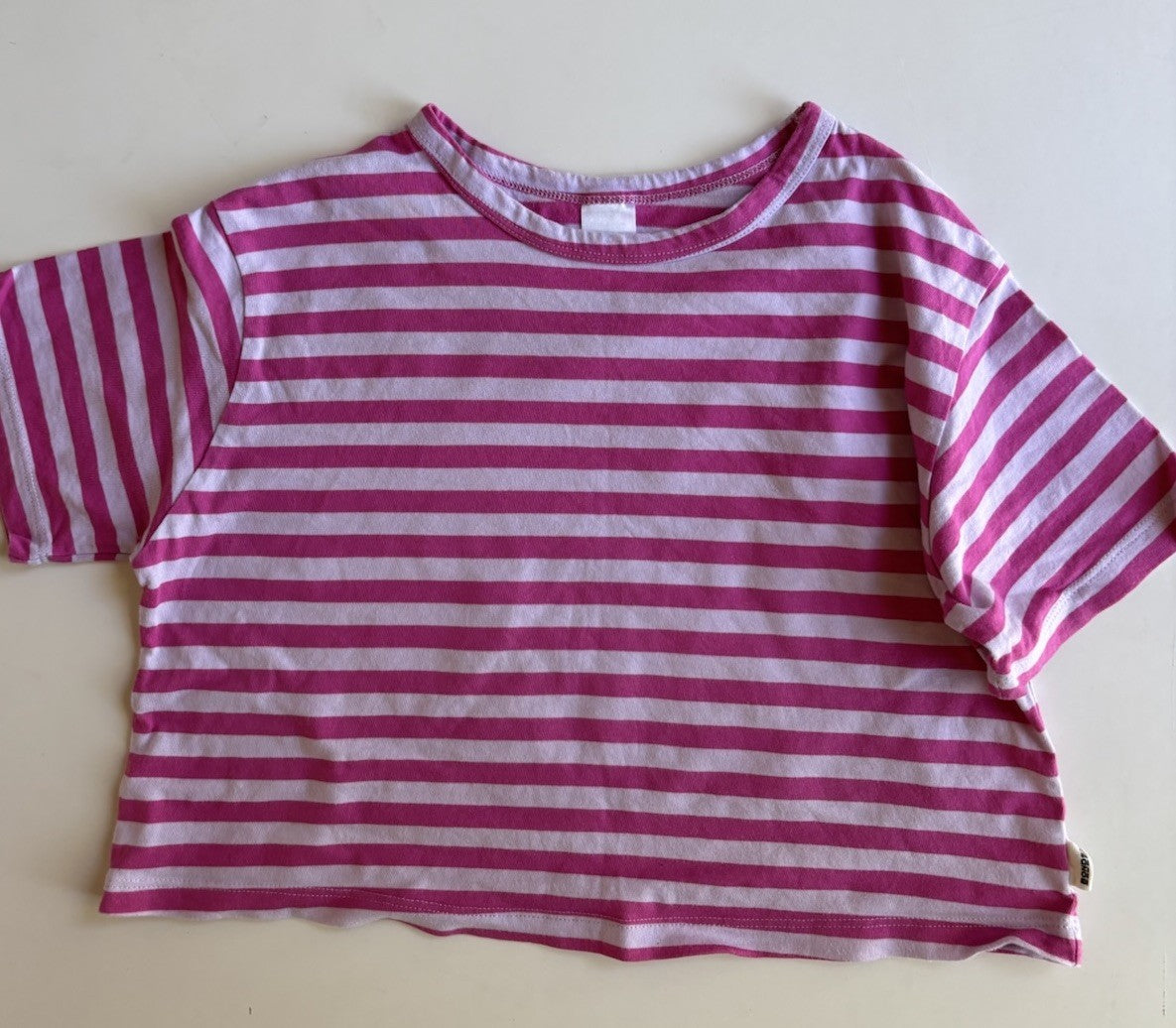 Bonds kids girls size 8 pink stripe cropped t-shirt top, VGUC