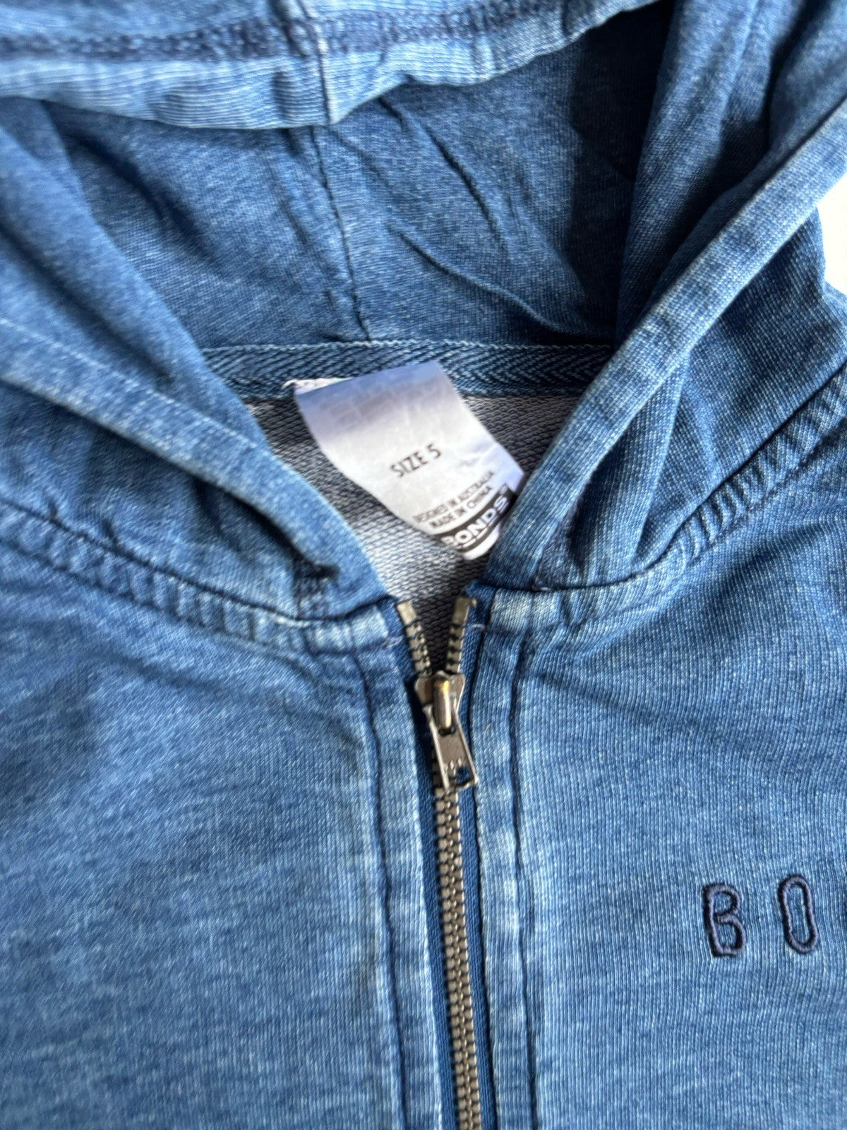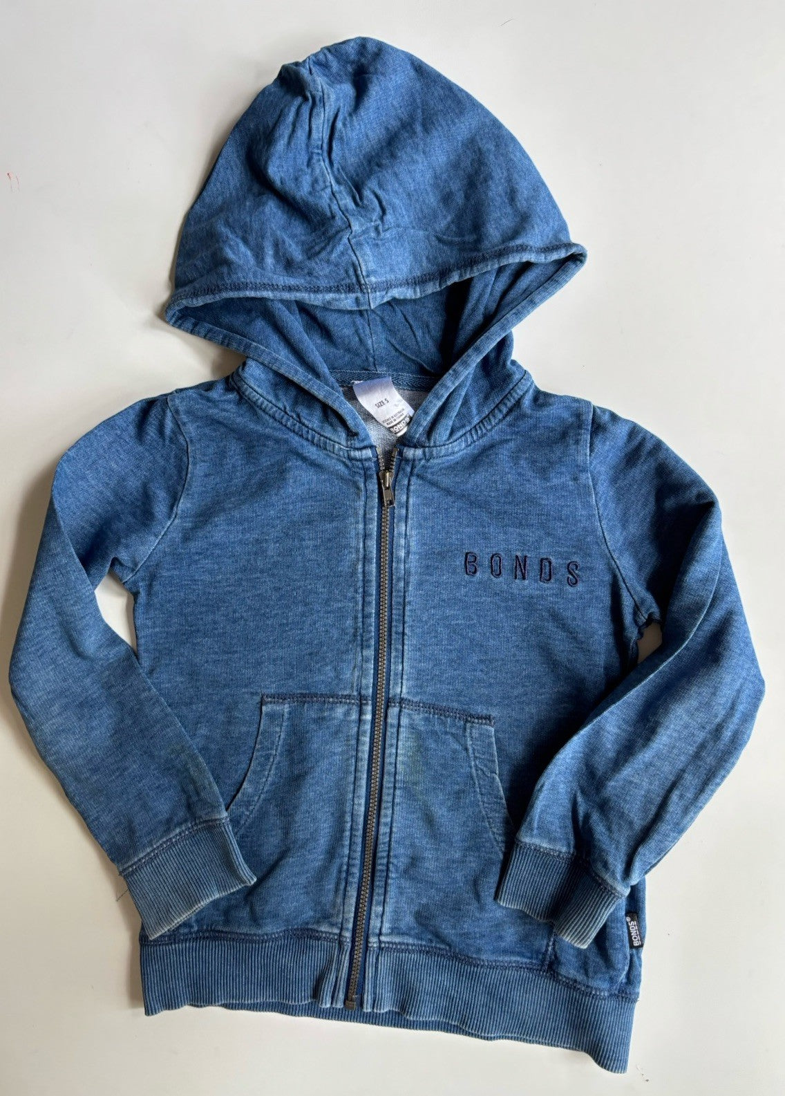 Bonds kids size 5 blue zip up hooded jumper, GUC