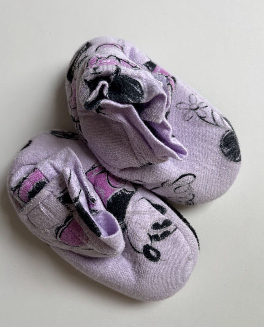 Bonds x Disney baby girl size 13cms purple Mickey Minnie Mouse slippers, VGUC