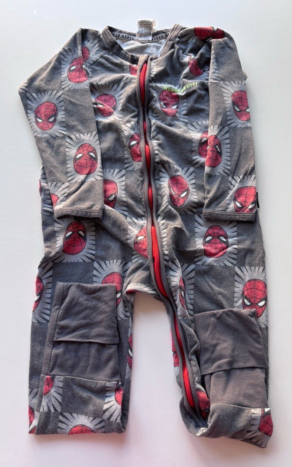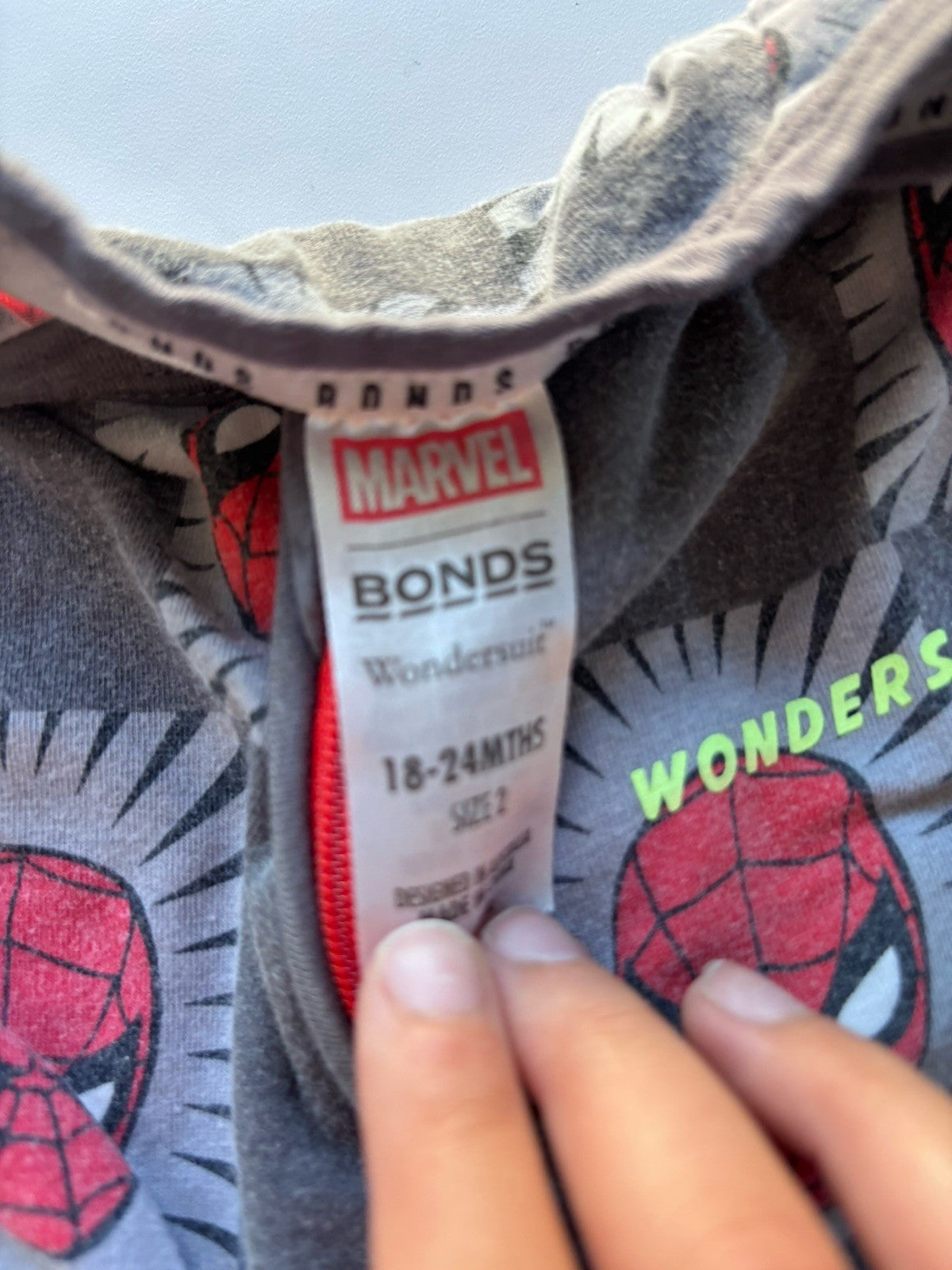 Bonds x Marvel baby size 18-24 months zippy wondersuit grey Spiderman, VGUC