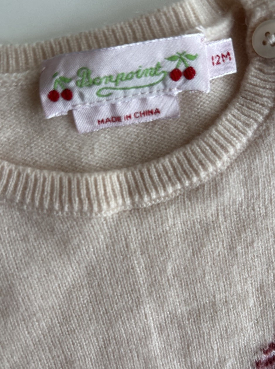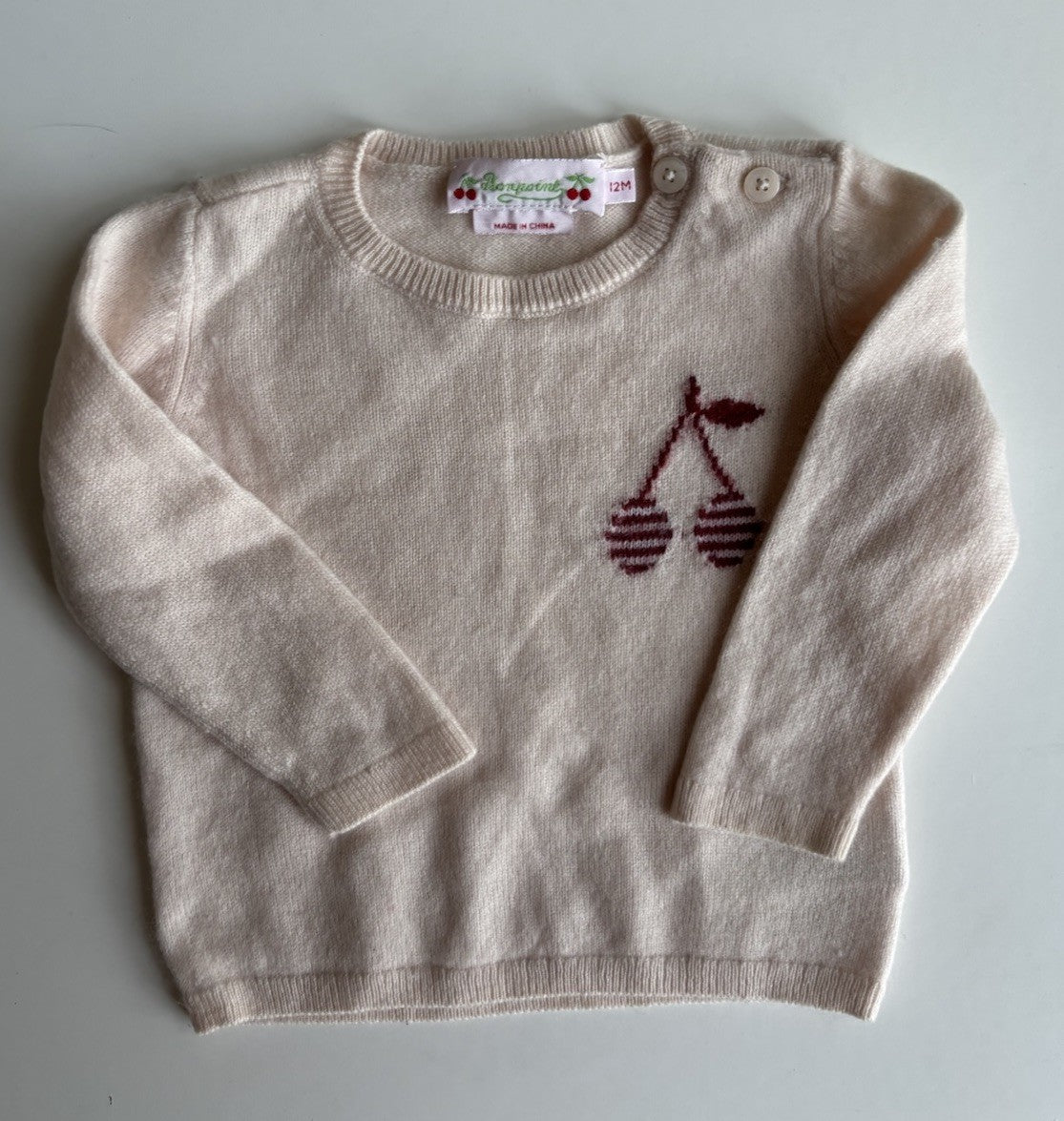 Bonpoint baby girl size 9-12 months pale pink cashmere jumper cherries, VGUC