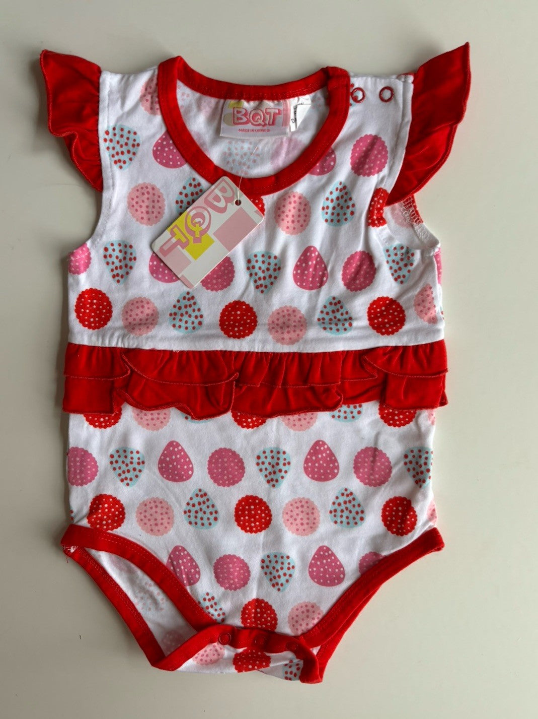 BQT baby girl size 6-12 months red pink spotted romper, BNWT