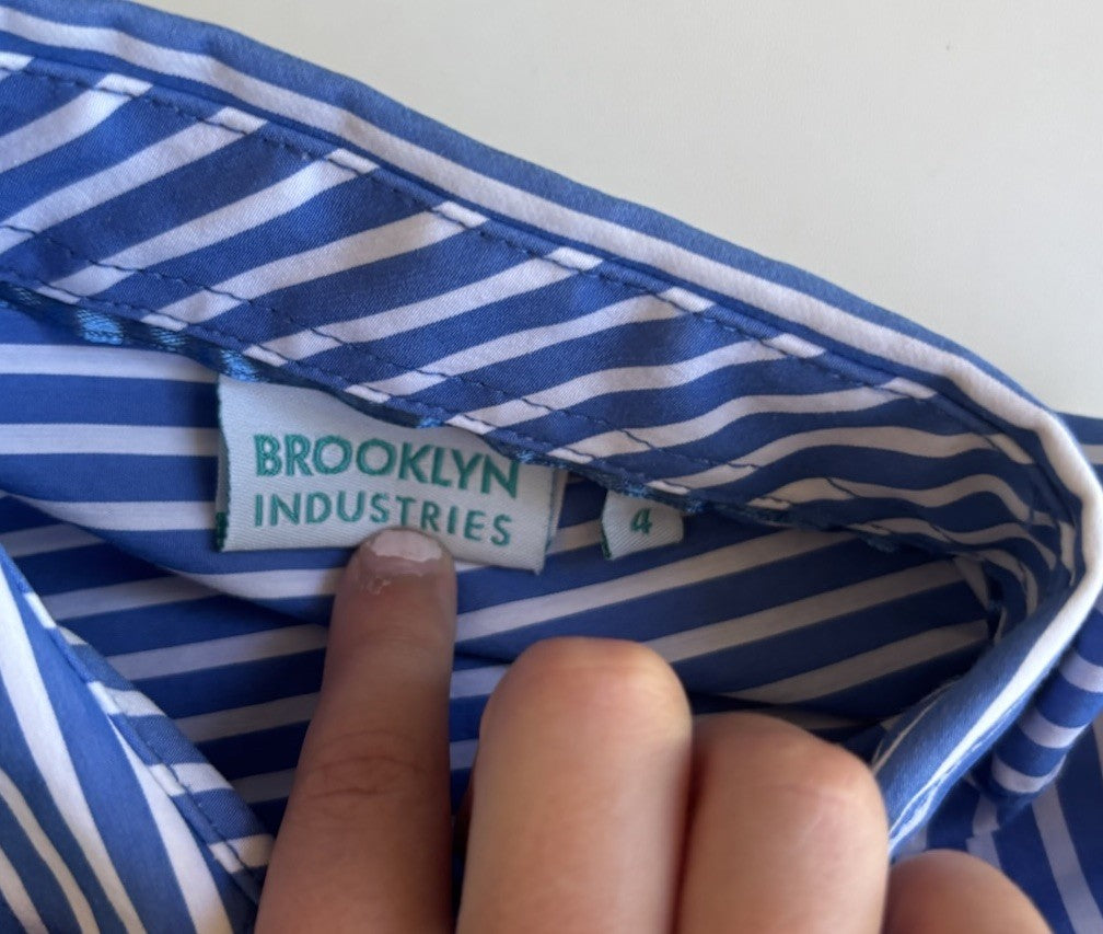 Brooklyn Industries kids boys size 4 blue white stripe button up shirt, VGUC
