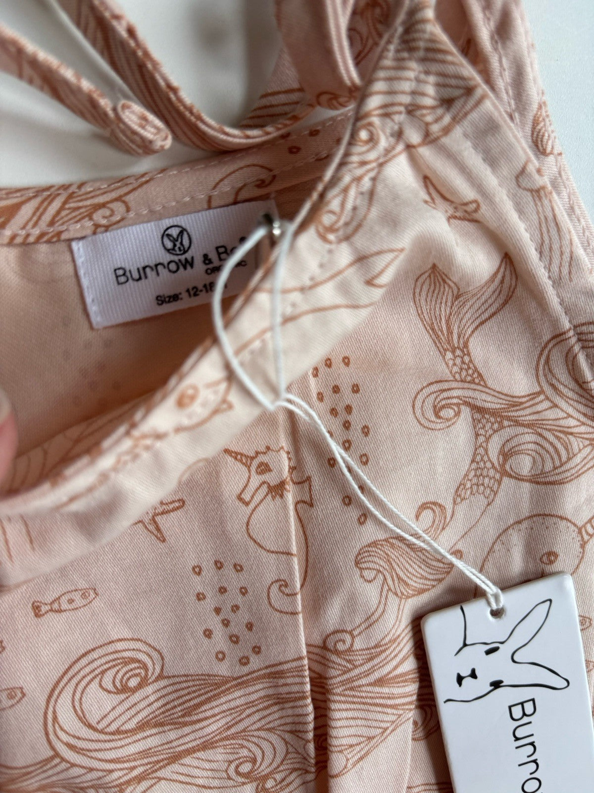 Burrow & Be baby girl size 12-18 months pink mermaids castles top, BNW