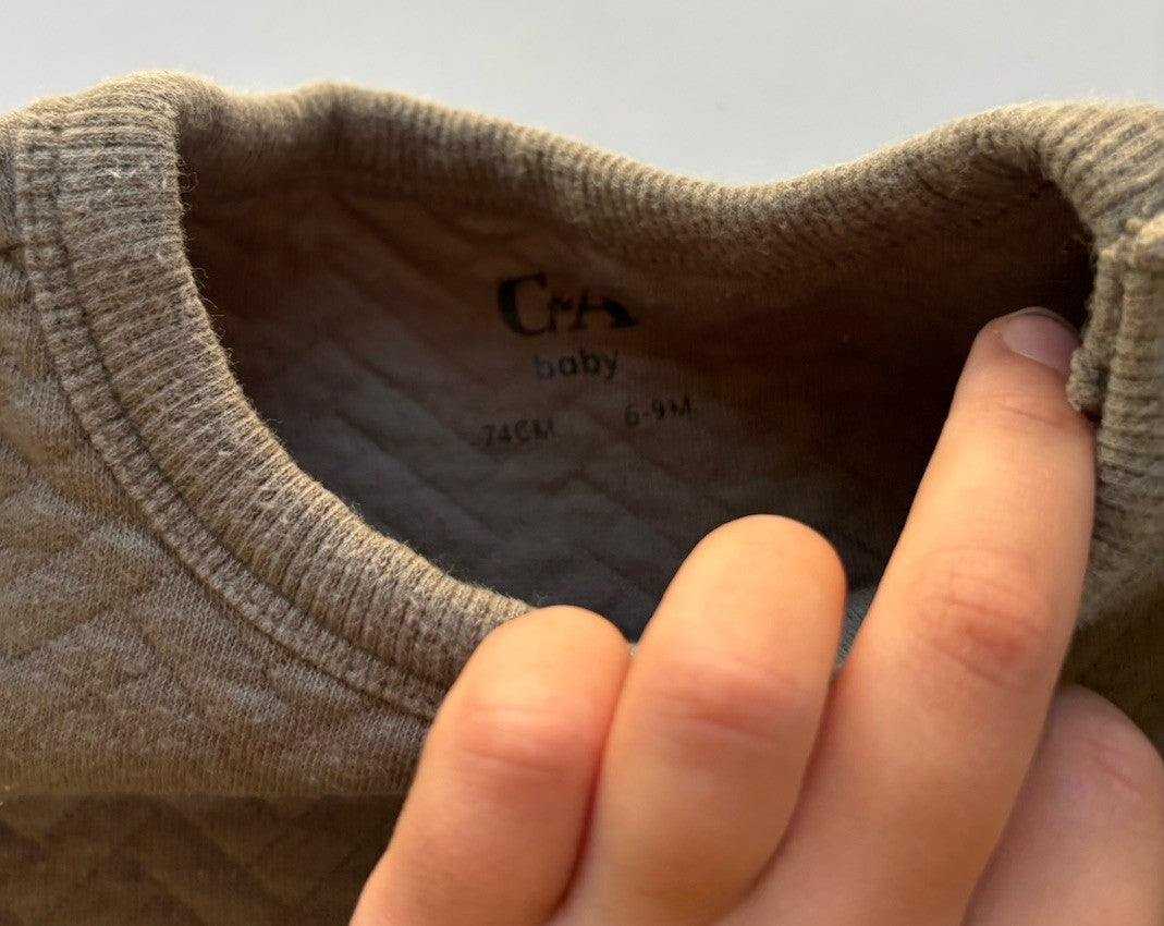 C&A baby size 6-9 months olive green quilted jumper, VGUC