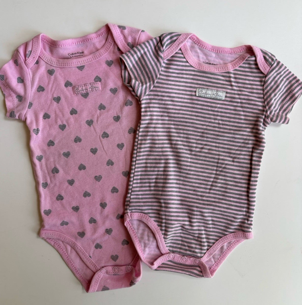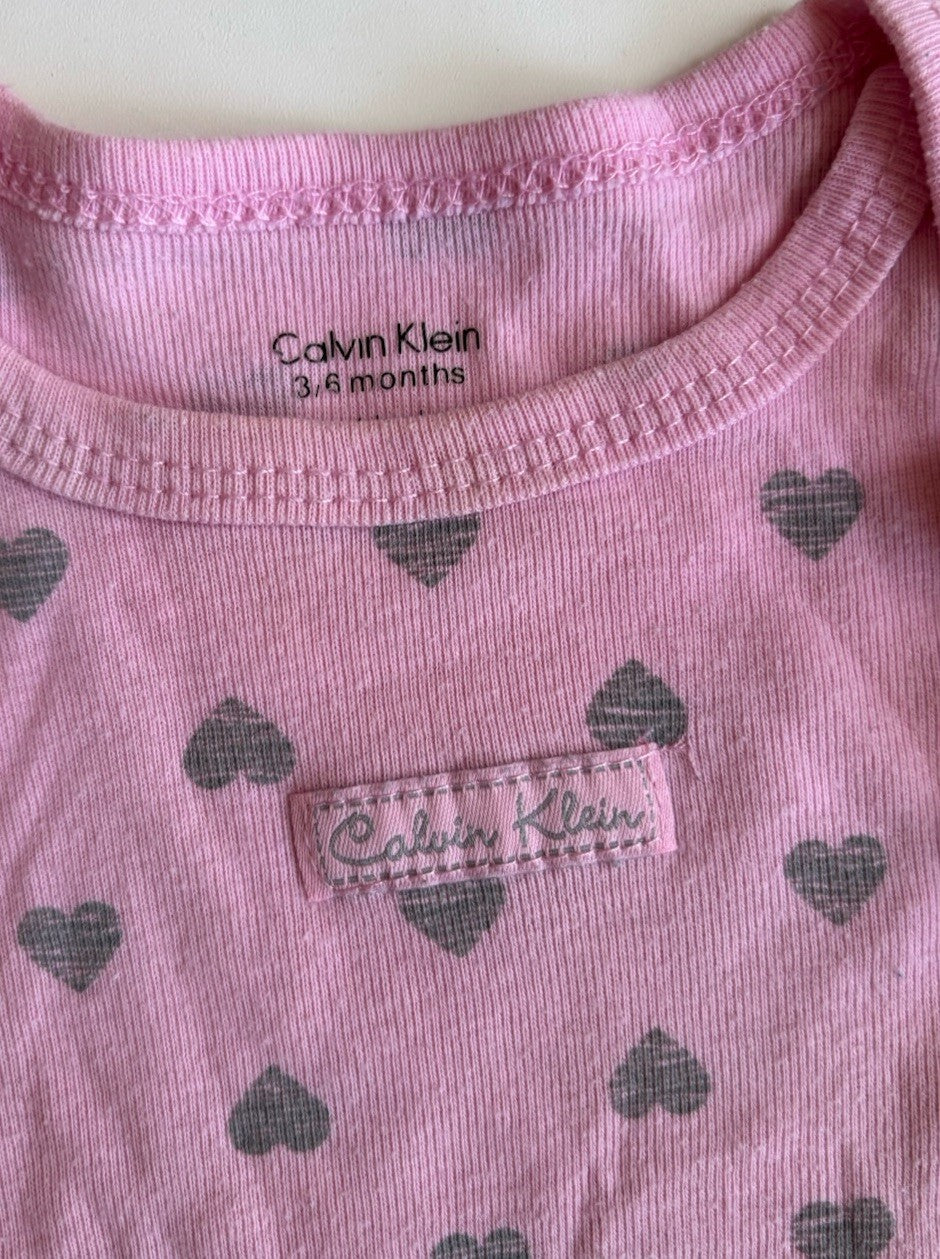 Calvin Klein baby girl size 3-6 months pink hearts stripes bodysuits x2, VGUC