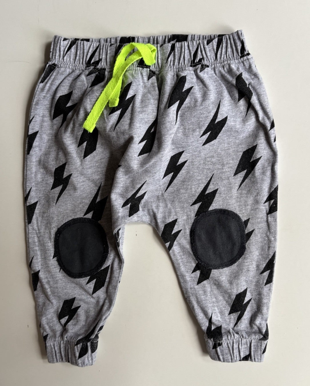Candy Stripes baby size 3-6 months grey black lightning strikes pants, VGUC