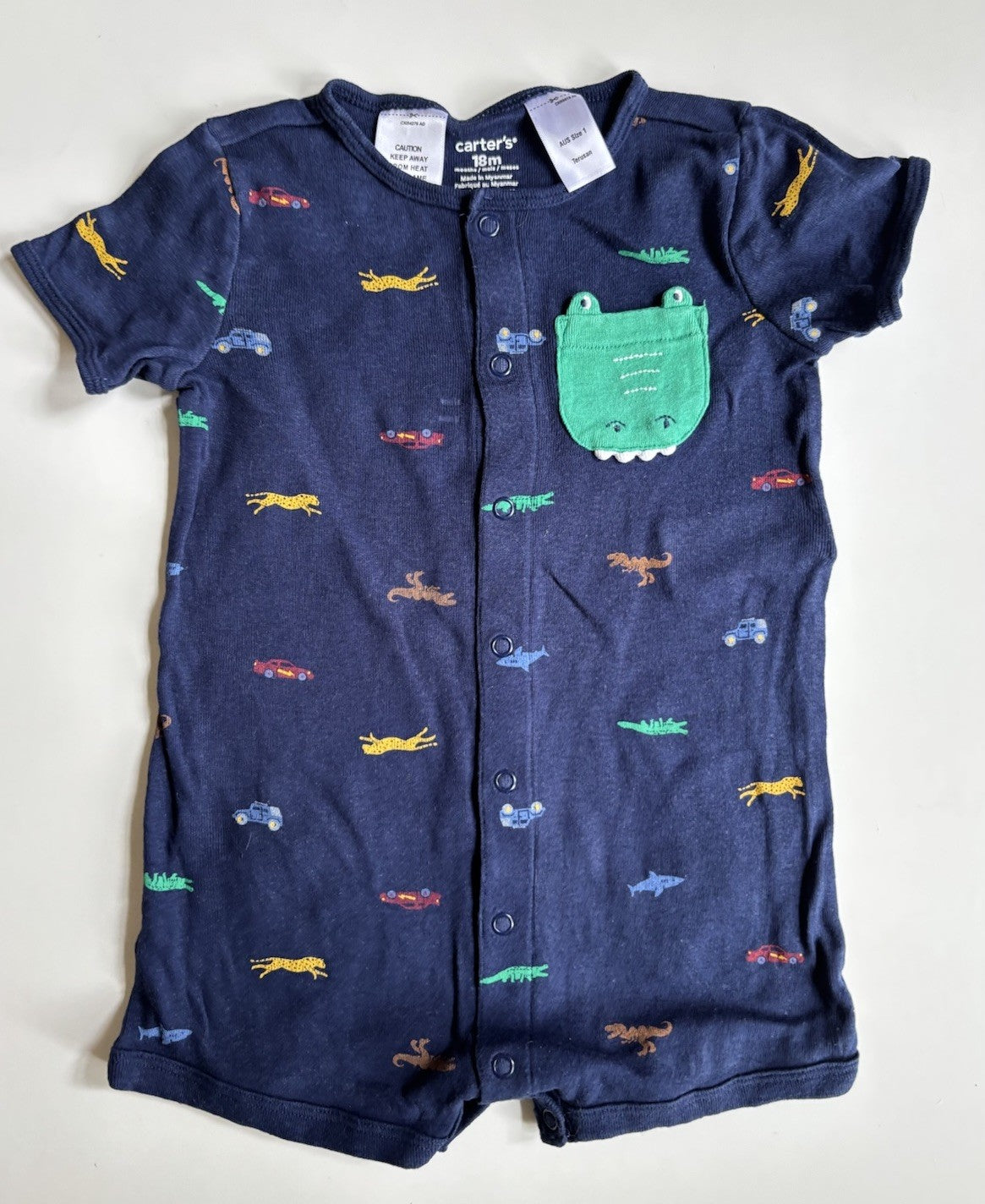 Carter's baby boy size 12-18 months blue crocodiles romper one-piece, VGUC