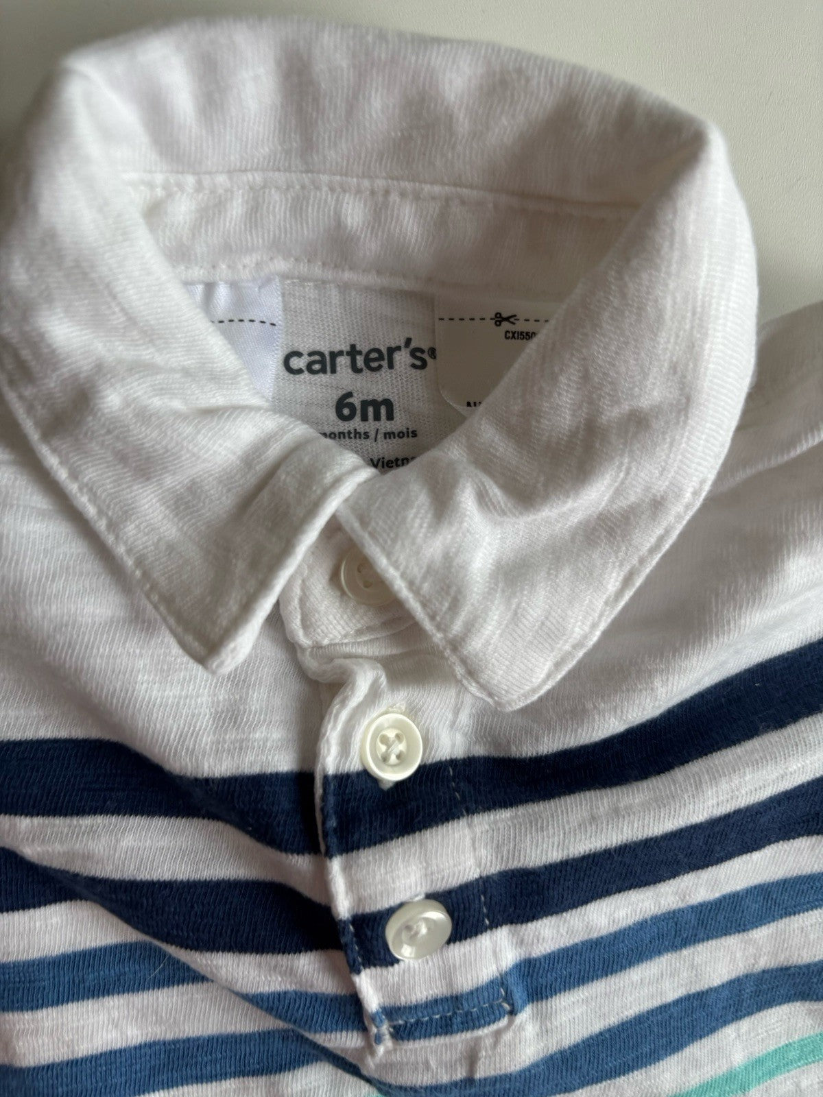 Carter's baby boy size 3-6 months white blue stripe collared polo, VGU