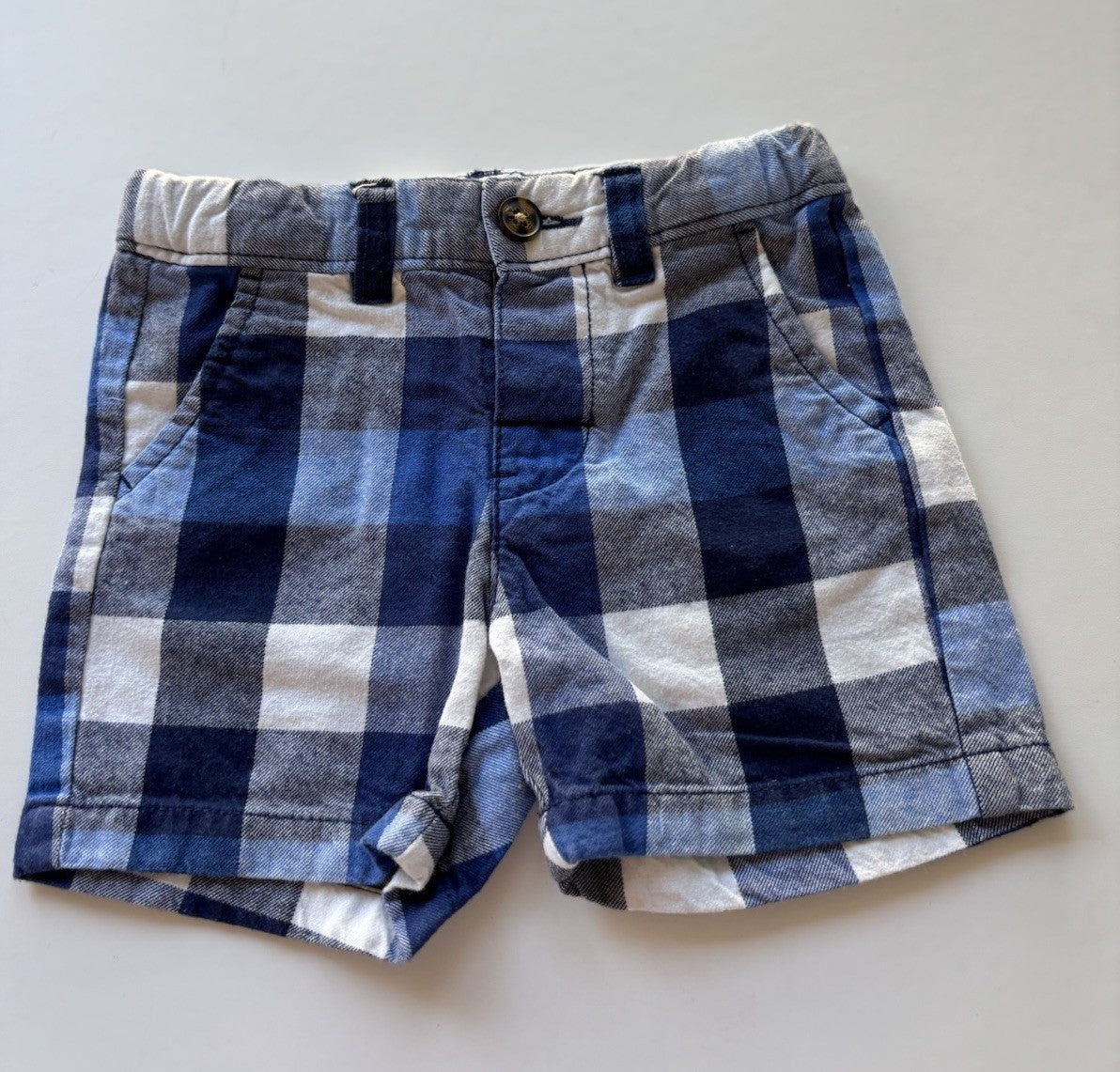 Carter's baby boy size 9-12 months blue check adjustable waist shorts, VGUC