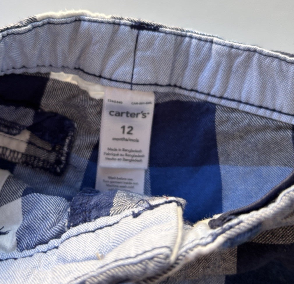 Carter's baby boy size 9-12 months blue check adjustable waist shorts,