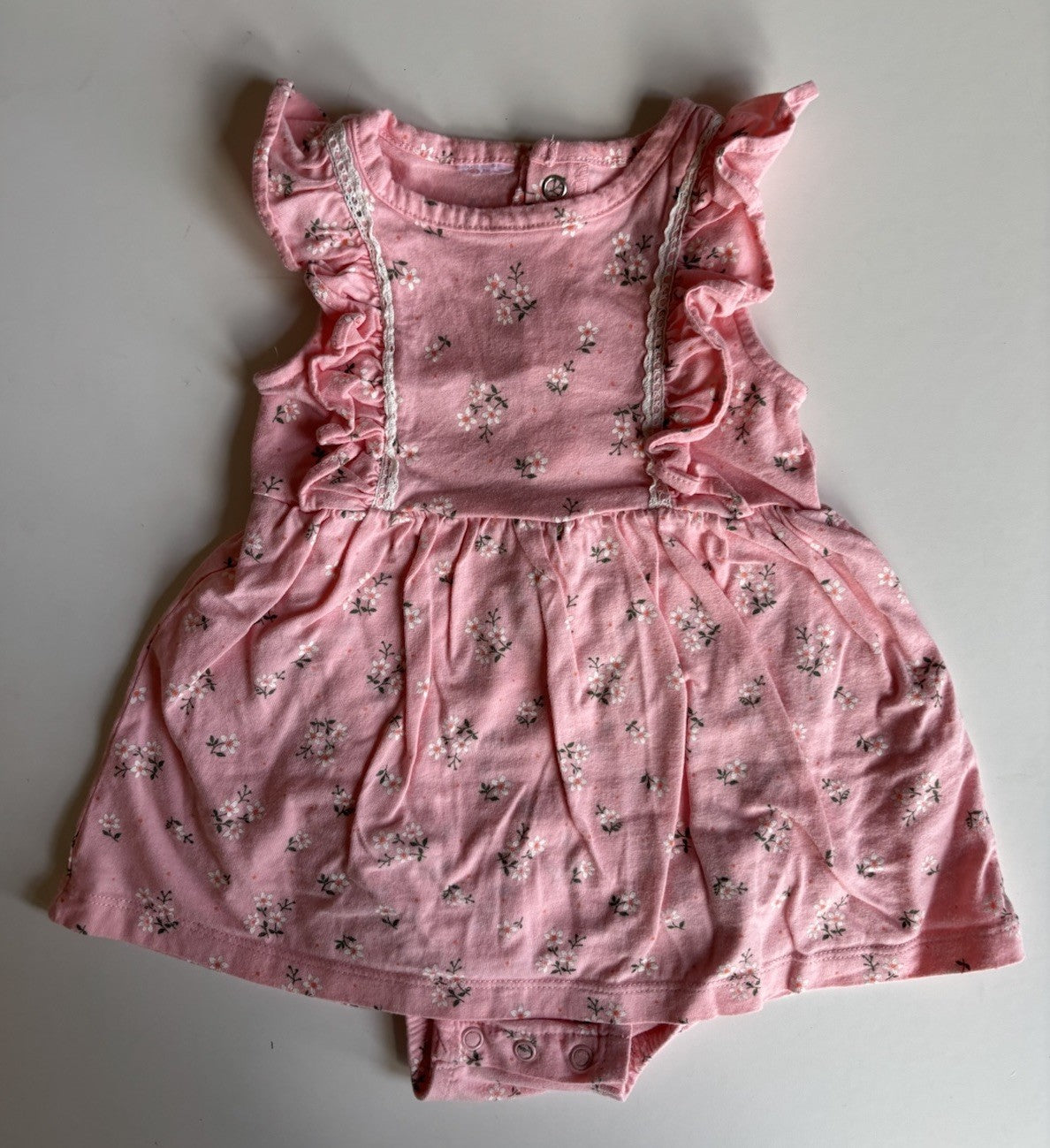 Carter's baby girl size 9-12 months pink floral bodysuit dress, VGUC