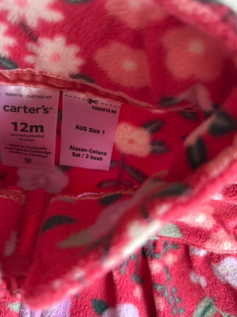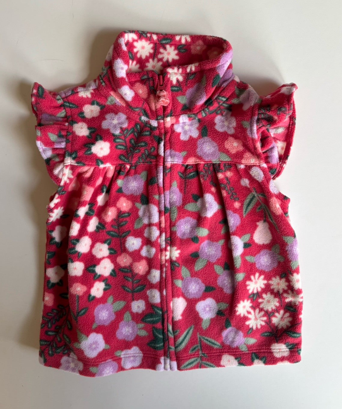 Carter's baby girl size 9-12 months pink floral fleecy vest jumper, VGUC