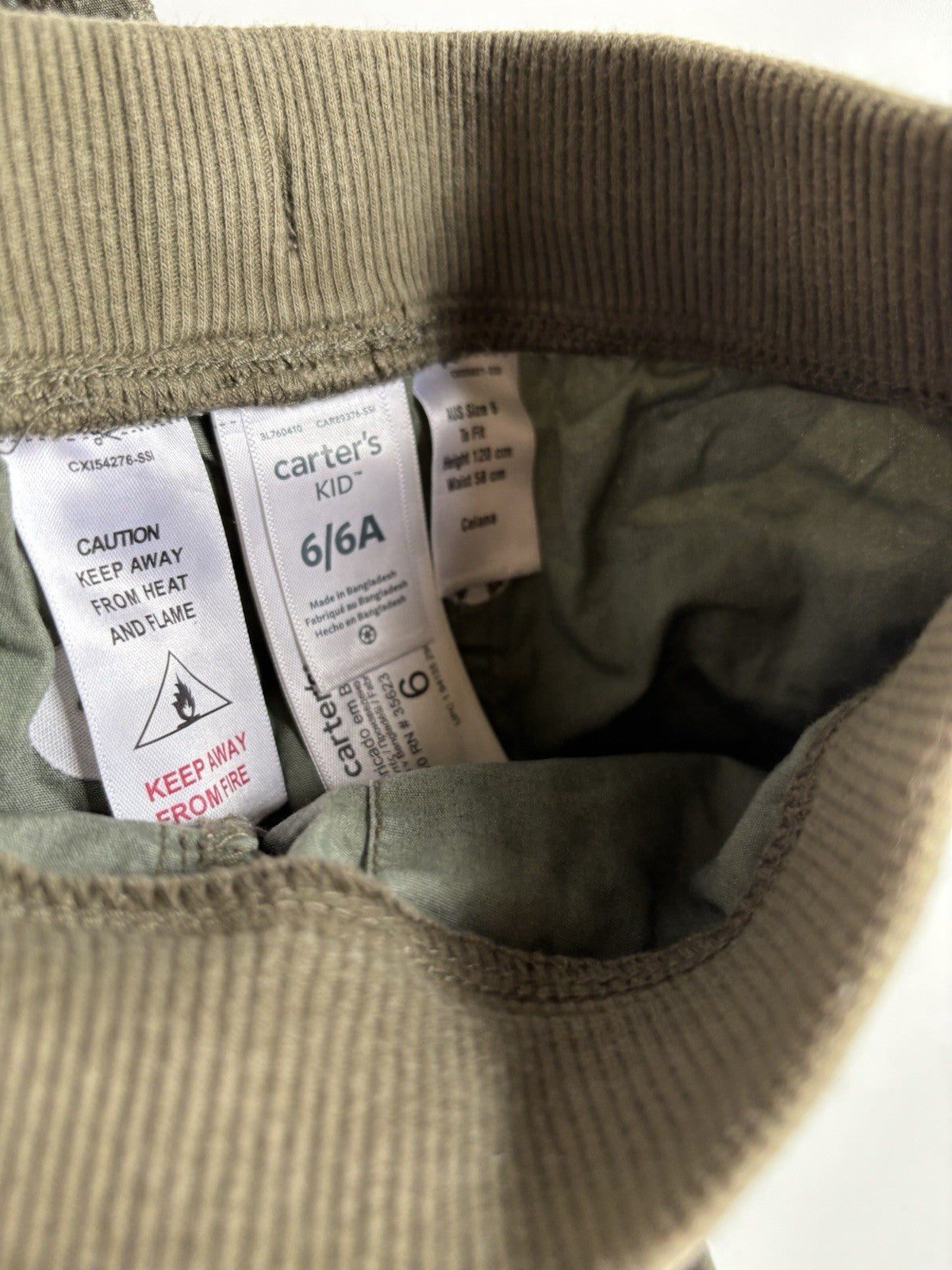 Carter's kids boys size 6 years green camo drawstring pants, VGUC