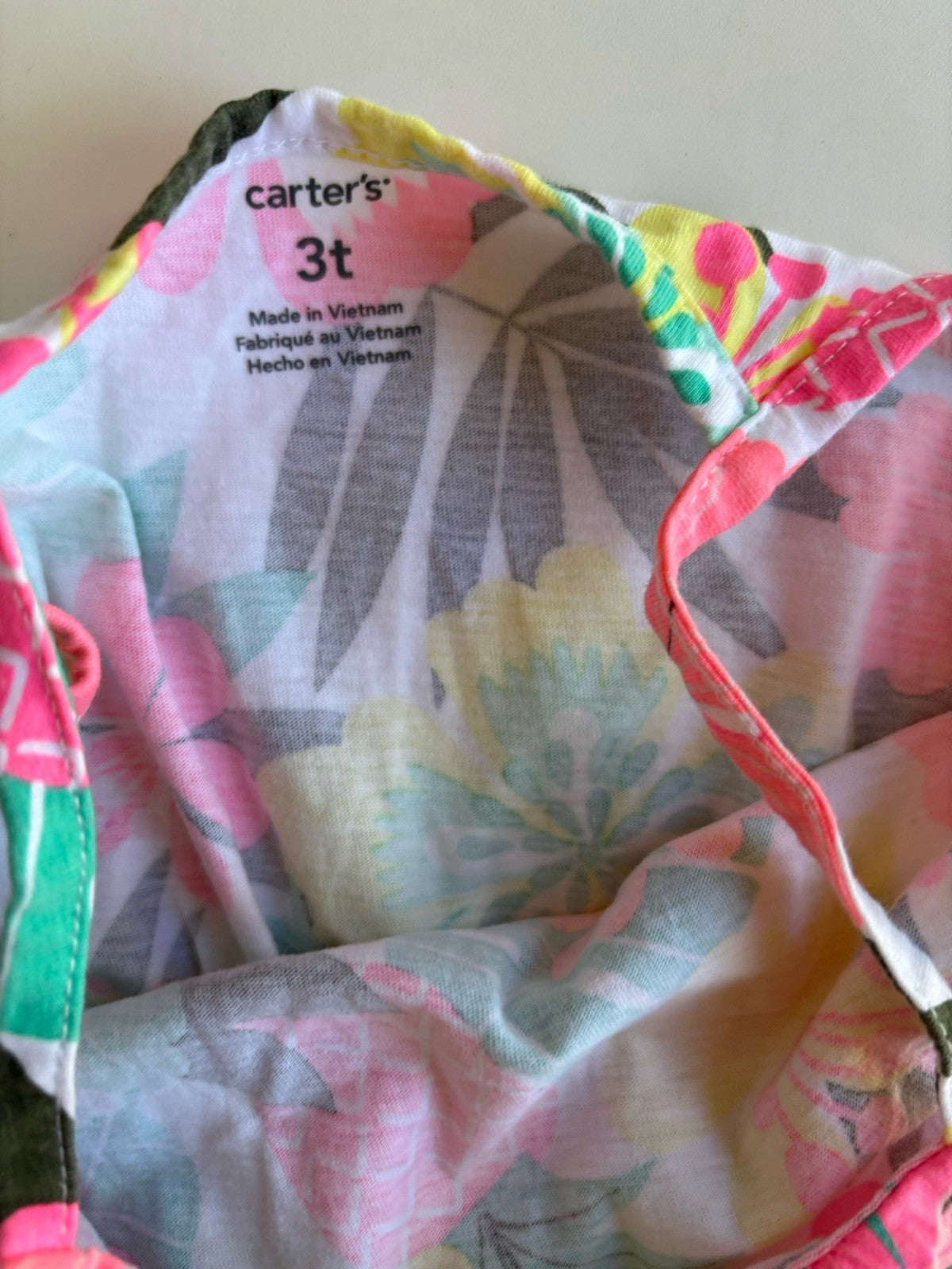 Carter's kids girls toddler size 3 tropical floral sleeveless dress, V