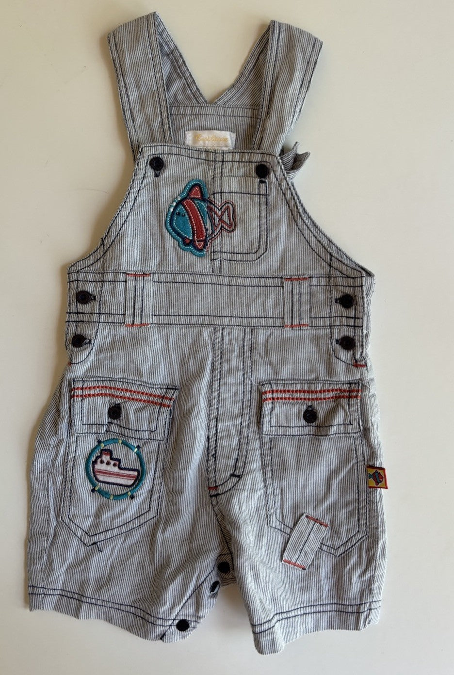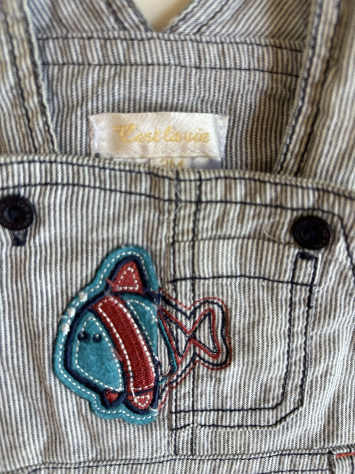 C'est La Vie baby size 0-3 months grey stripe romper fish, VGUC