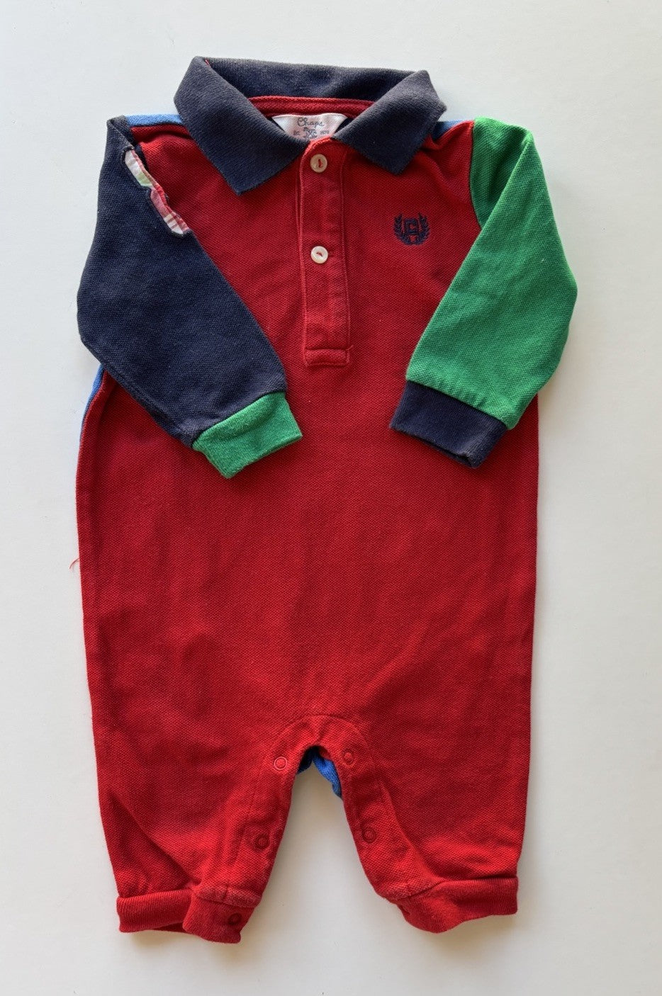 Chaps baby boy size 0-3 months red blue green polo one-piece, VGUC