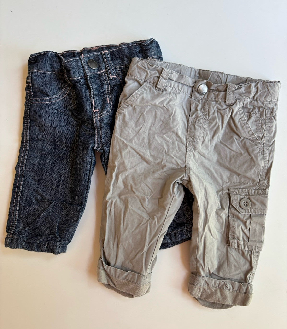Charlie & Me baby girl size 3-6 months x2 pairs pants blue jeans cargo, VGUC