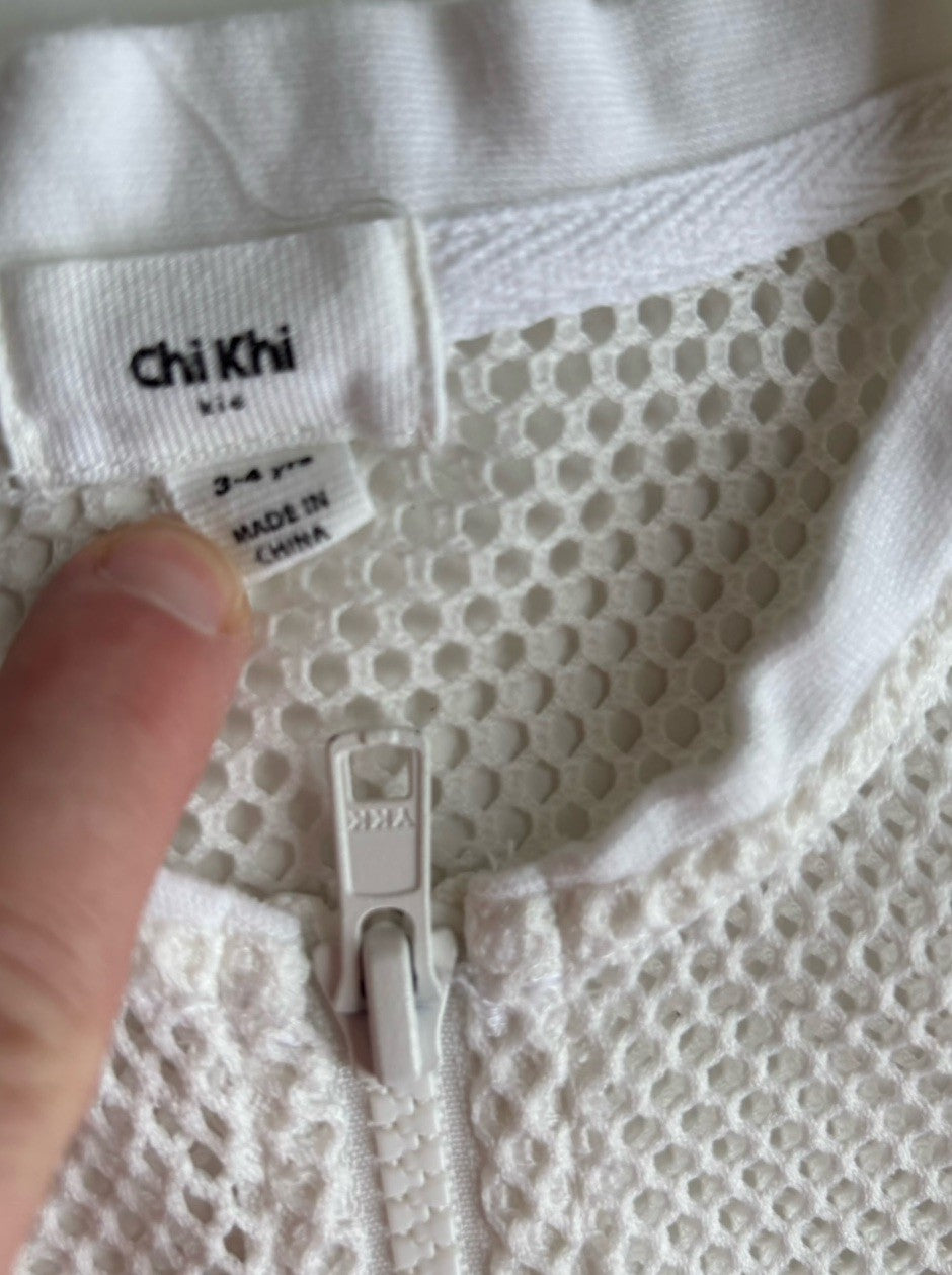 Chi Khi kids girls size 3-4 years white mesh zip up jumper, VGUC