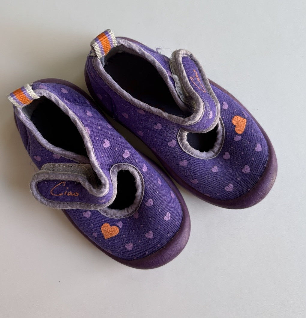 Ciao kids girls toddler size EUR 20 purple hearts neoprene shoes, VGUC