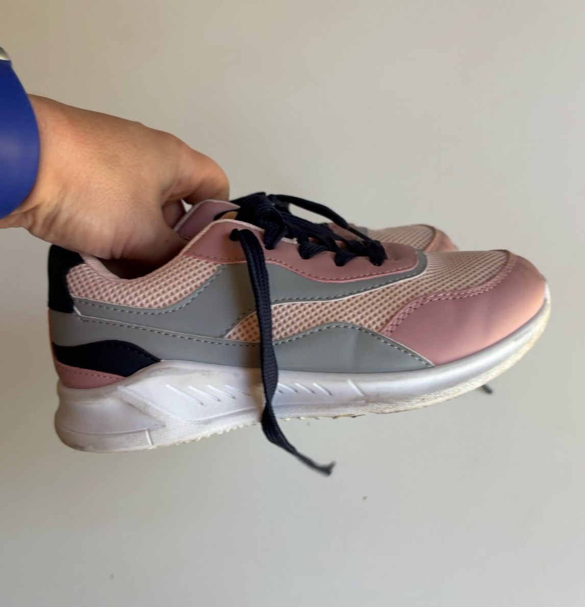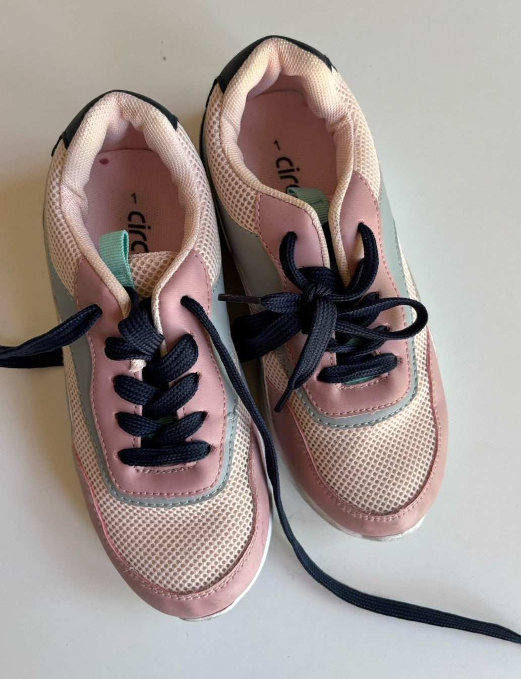 Circuit kids girls size US 1 pink grey lace up sneakers shoes, VGUC