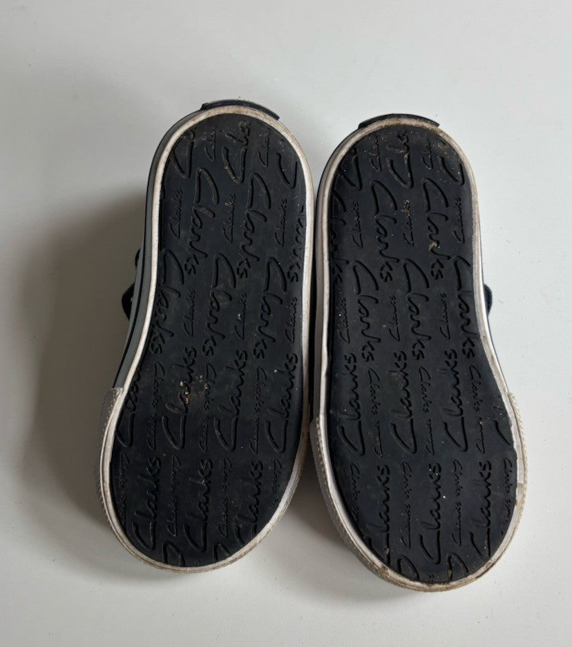Clarks kids girls size UK 6 blue white canvas Mary Jane shoes, VGUC