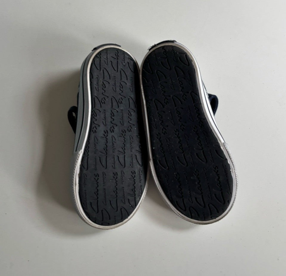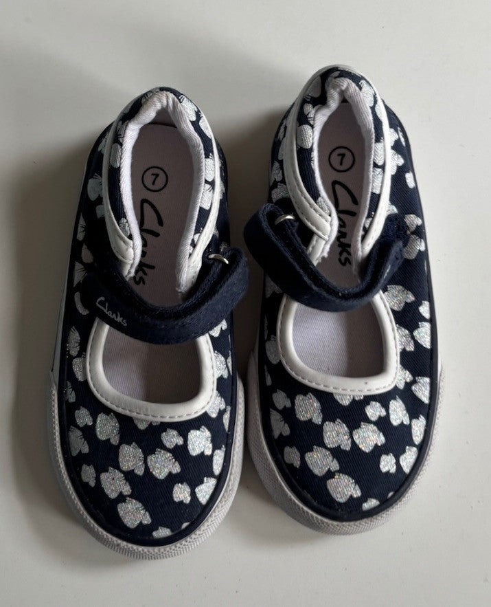 Clarks kids girls size UK 7 blue white canvas Mary Jane shoes, VGUC