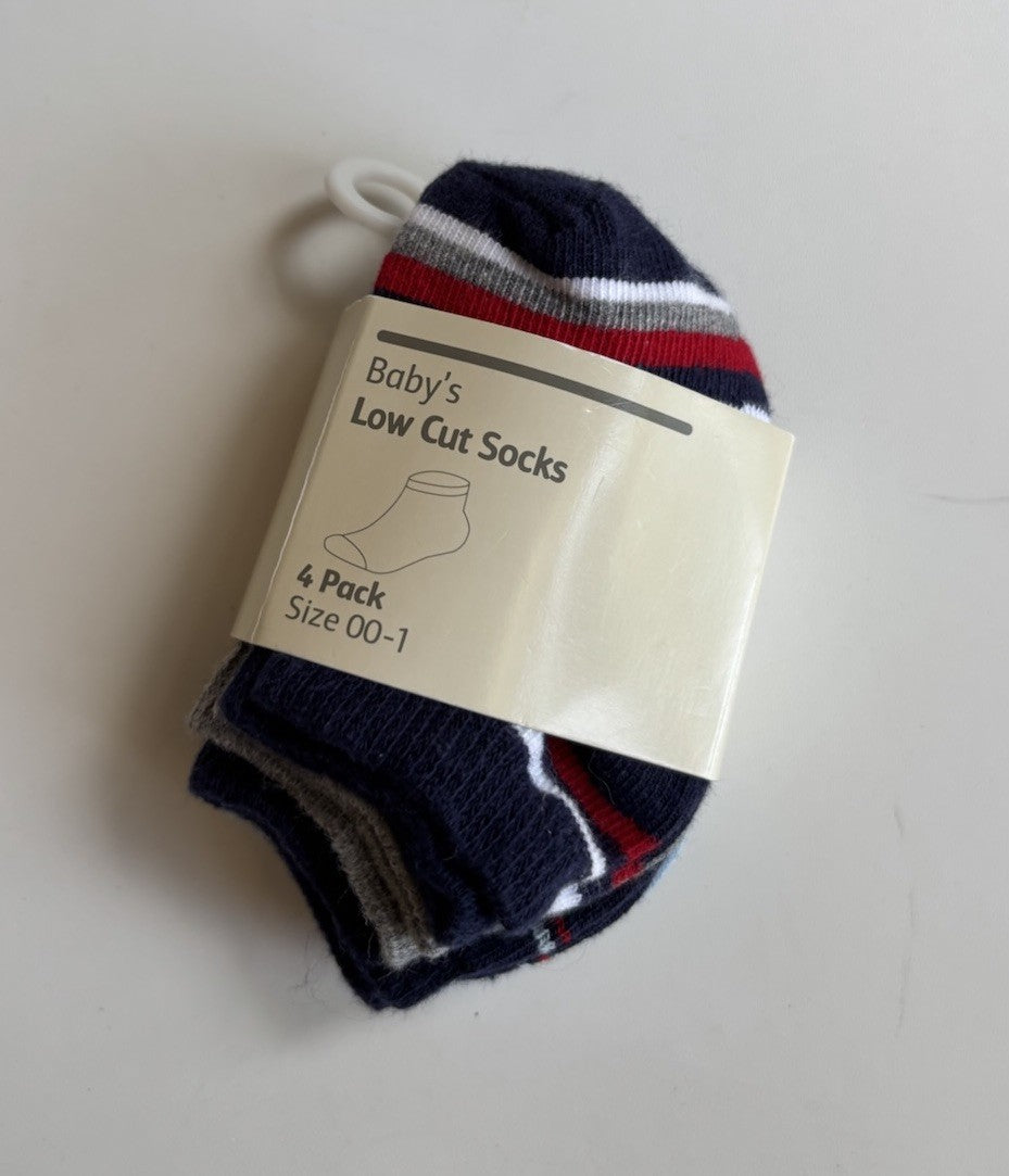 Coles baby boy size 00-1 4 pack low cut socks blue stripe, BNWT