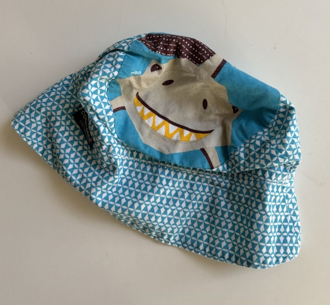 Coq en Pate kids toddler size M 49/51cms blue shark sun hat, VGUC