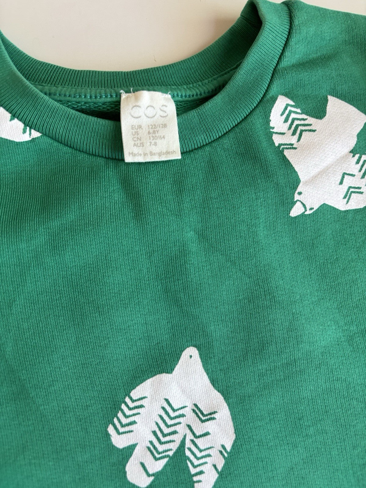 COS kids girls size 7-8 green white birds jumper dress, GUC