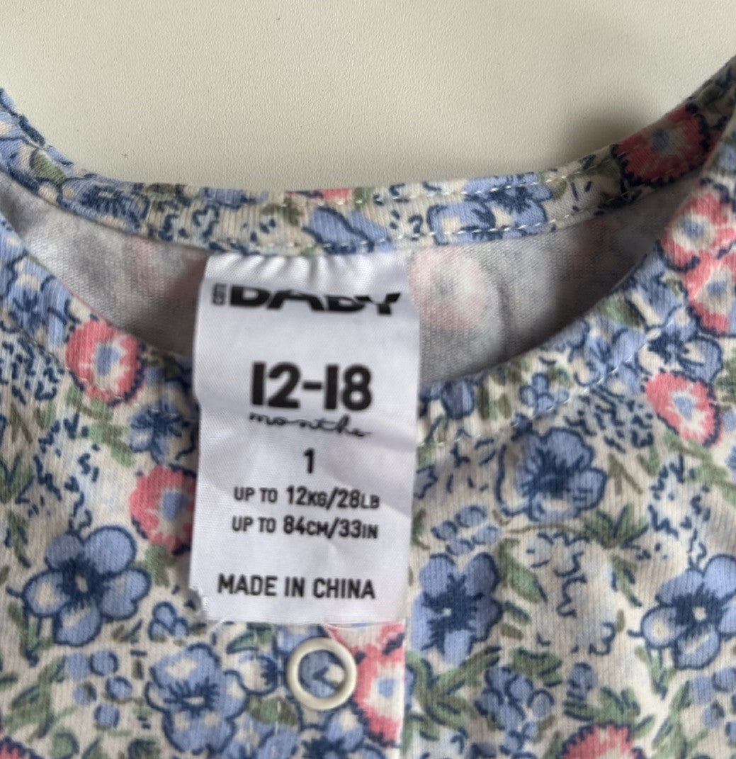 Cotton On baby girl size 12-18 months blue pink floral dress, VGUC