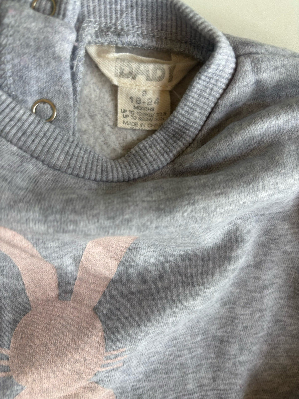 Cotton On baby girl size 18-24 months grey bunny gathered sleeve jumpe