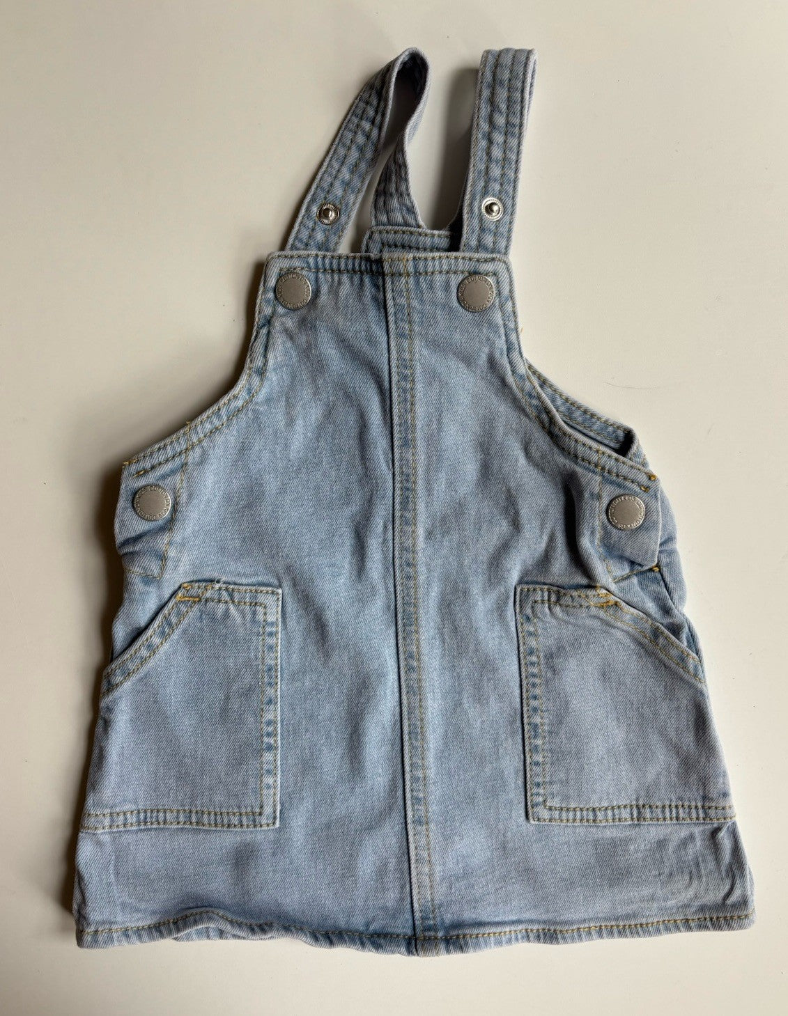 Cotton On baby girl size 3-6 months blue denim pinafore dress, VGUC