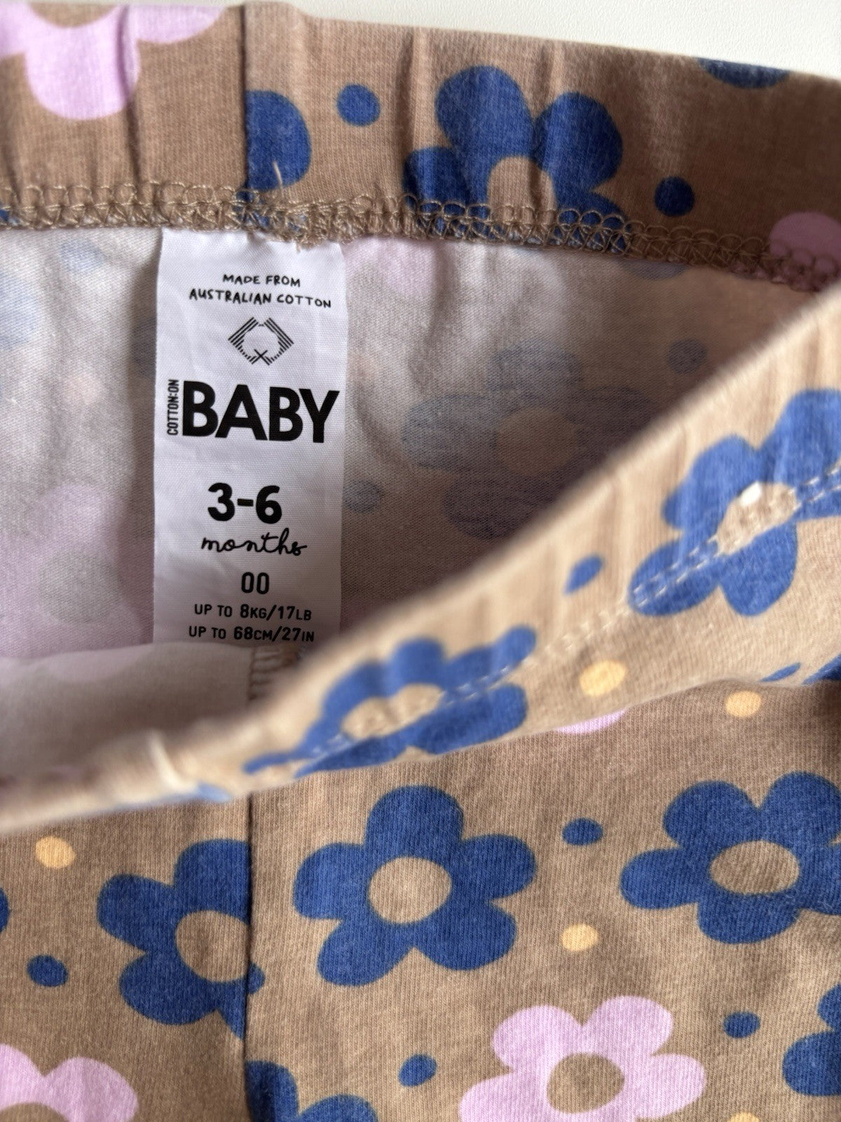 Cotton On baby girl size 3-6 months brown floral leggings flared, VGUC