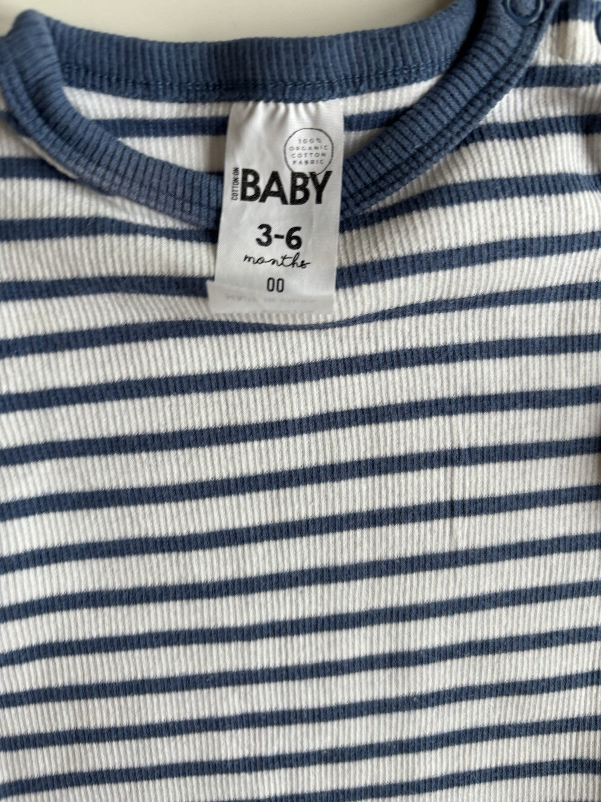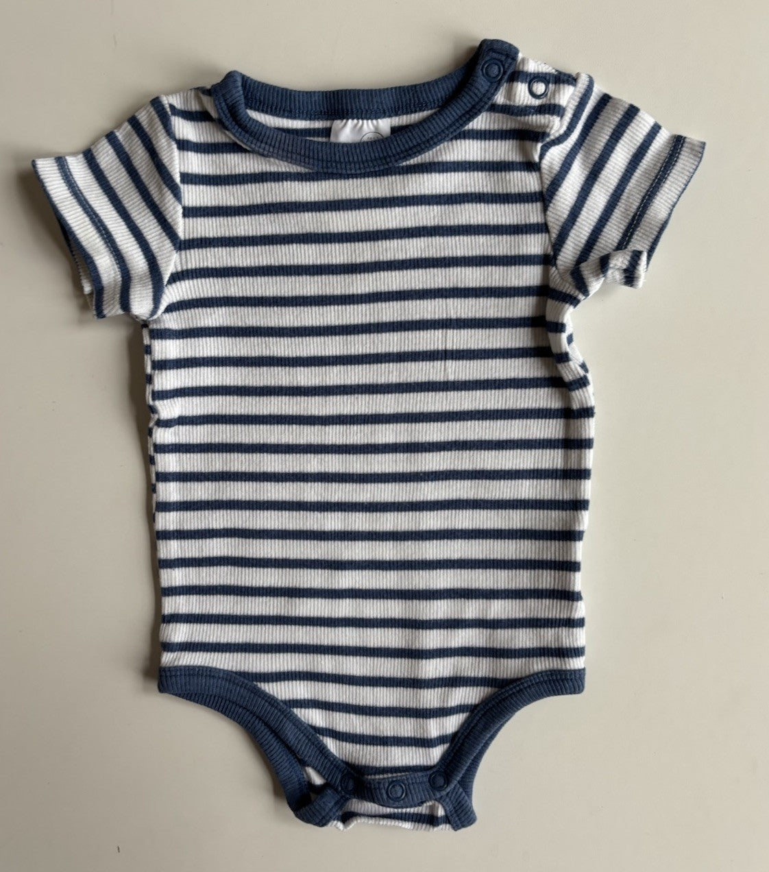 Cotton On baby size 3-6 months blue white stripe ribbed bodysuit, VGUC