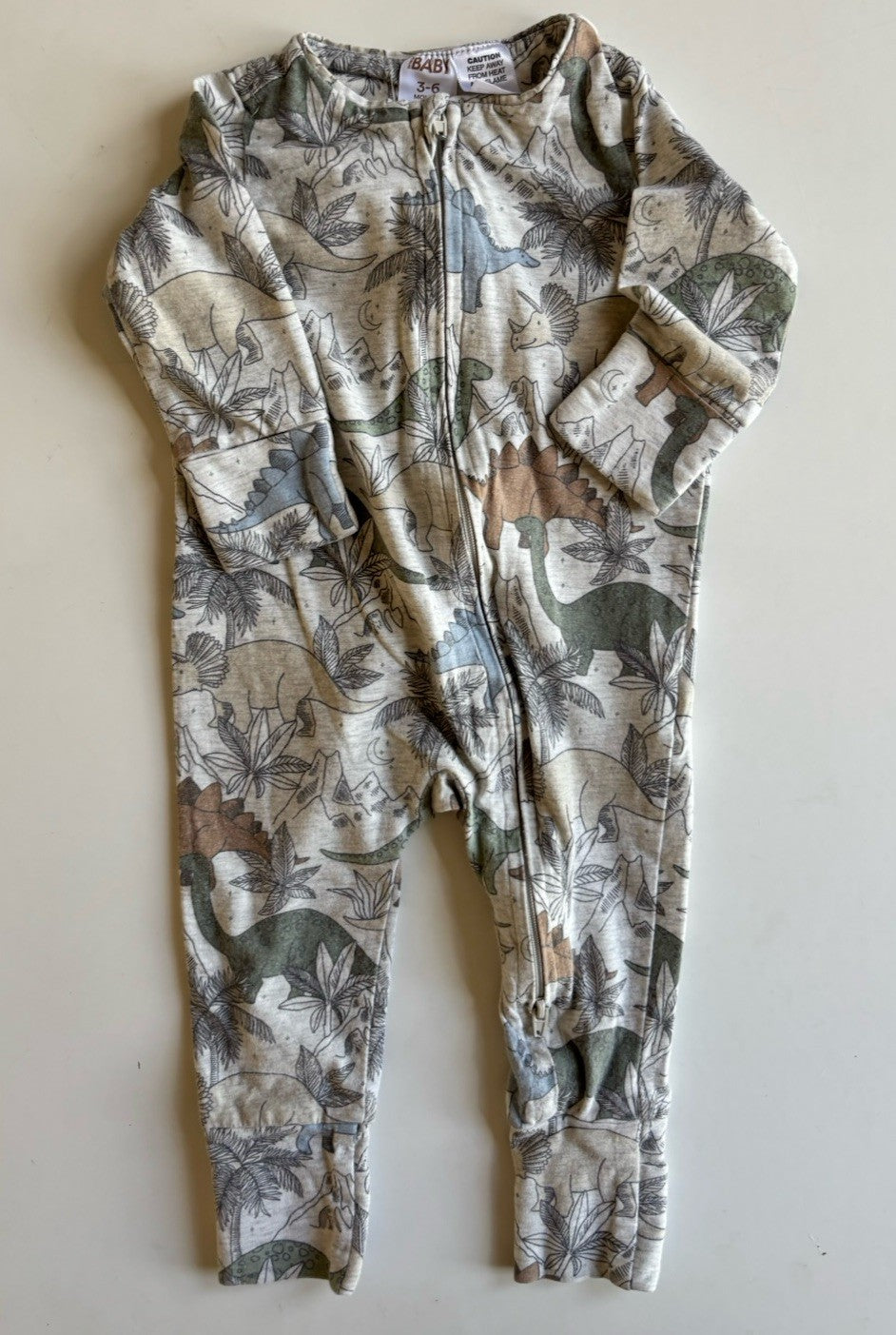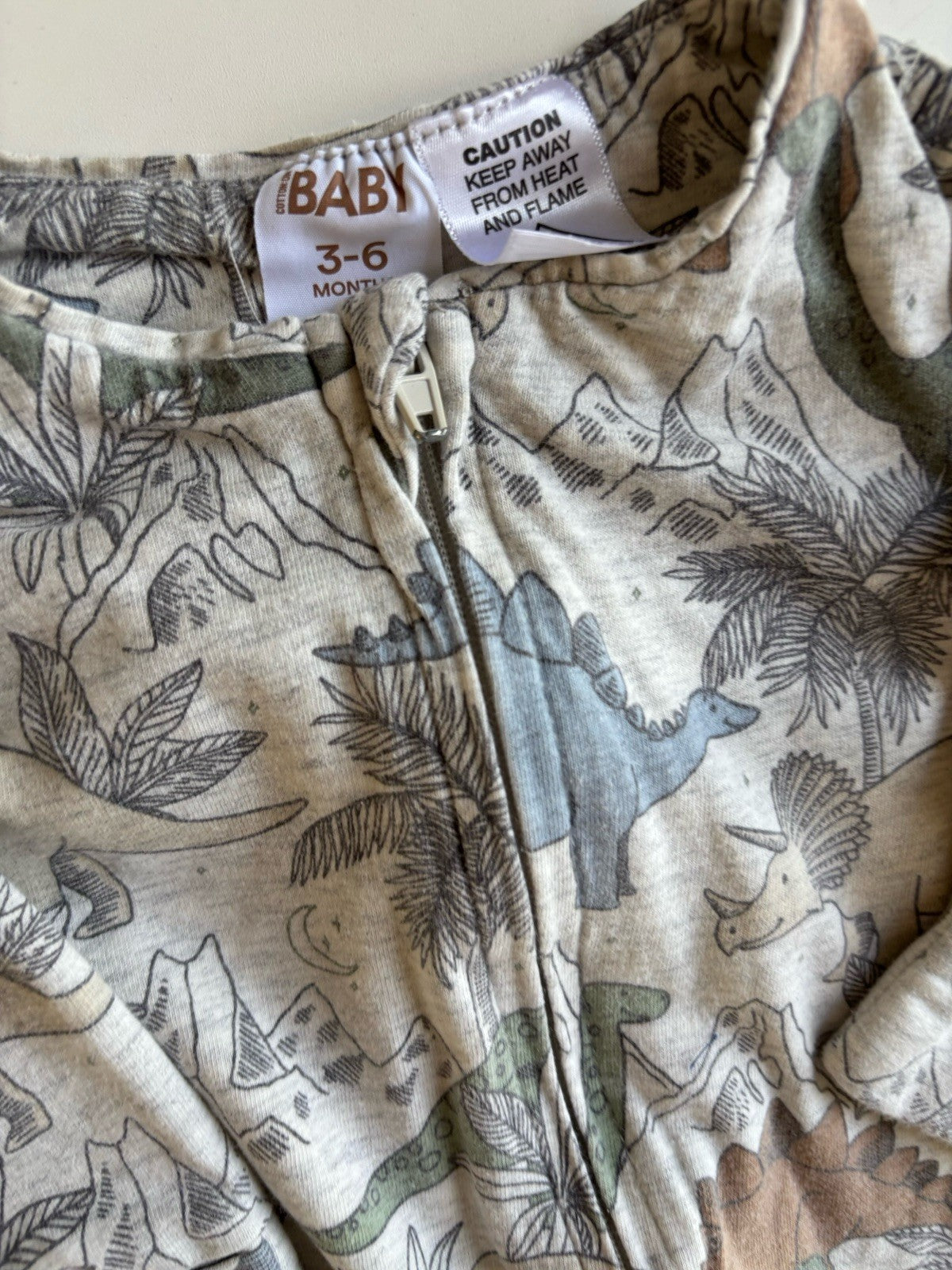 Cotton On baby size 3-6 months grey dinosaurs one-piece zip, VGUC