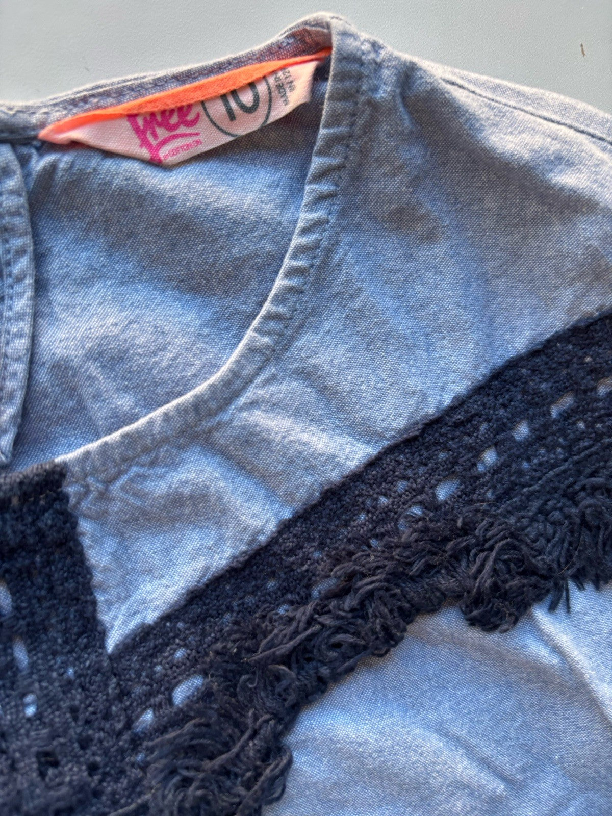 Cotton On Free kids size 10 blue fringe long sleeve dress, VGUC