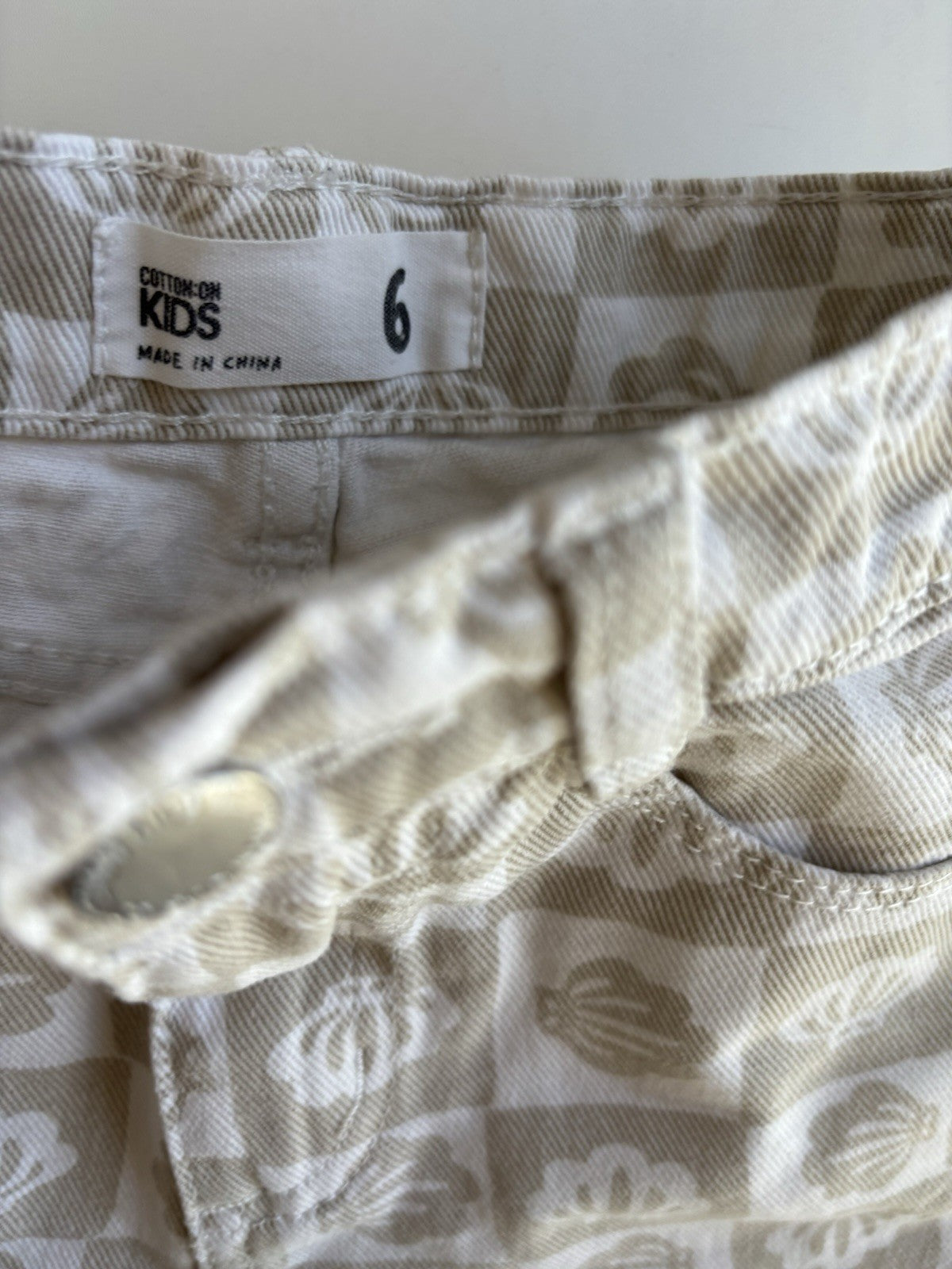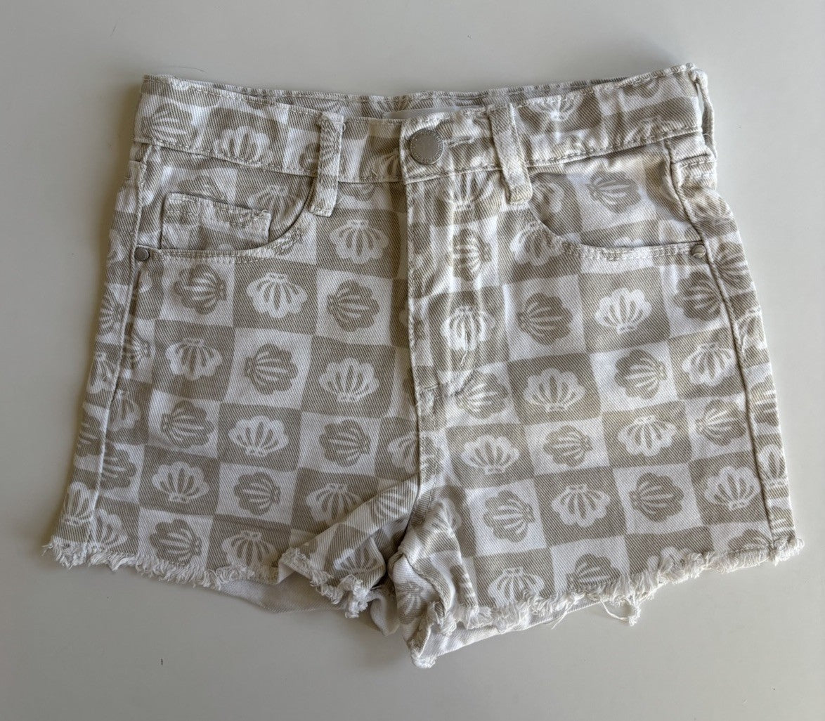 Cotton On Kids girls size 6 beige white shells denim cut off shorts, V