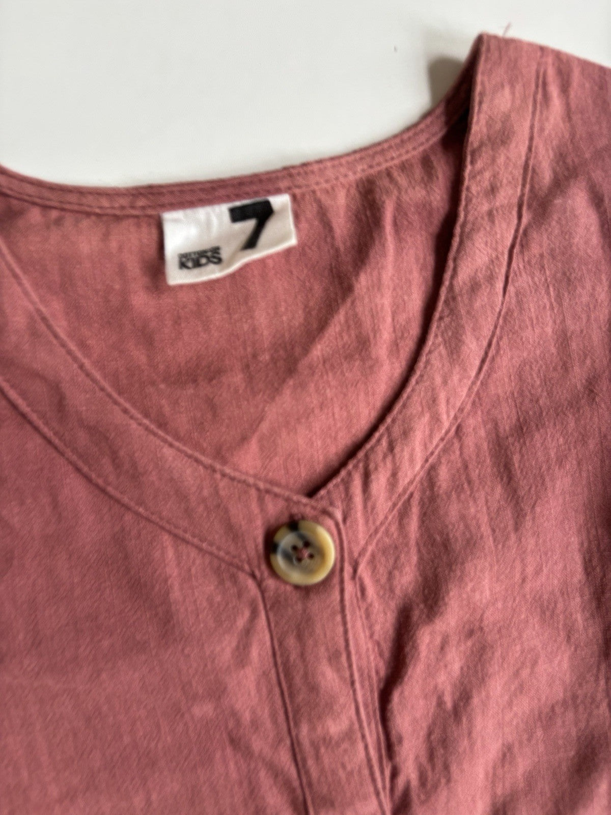 Cotton On Kids girls size 7 maroon pink short sleeve button up dress,