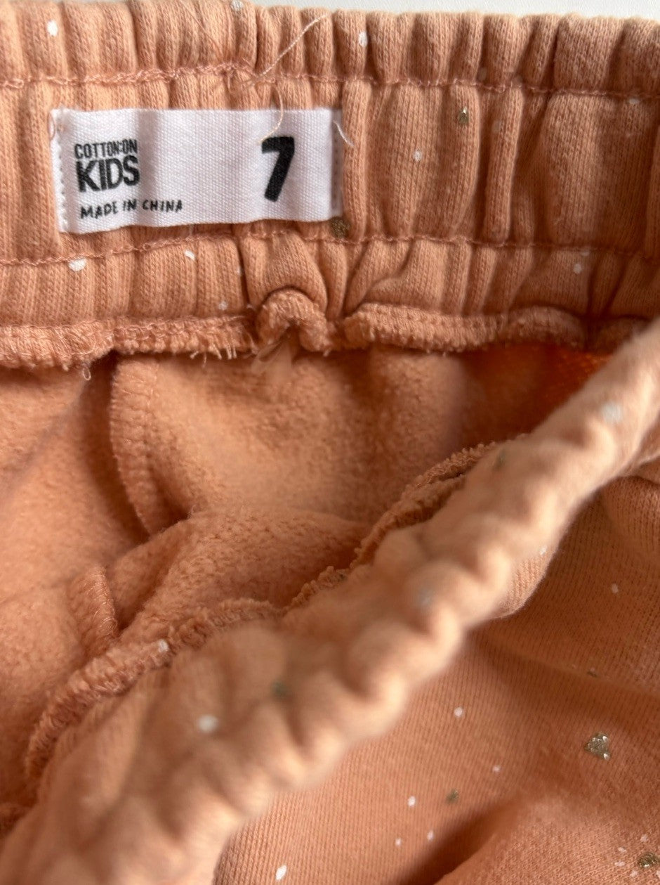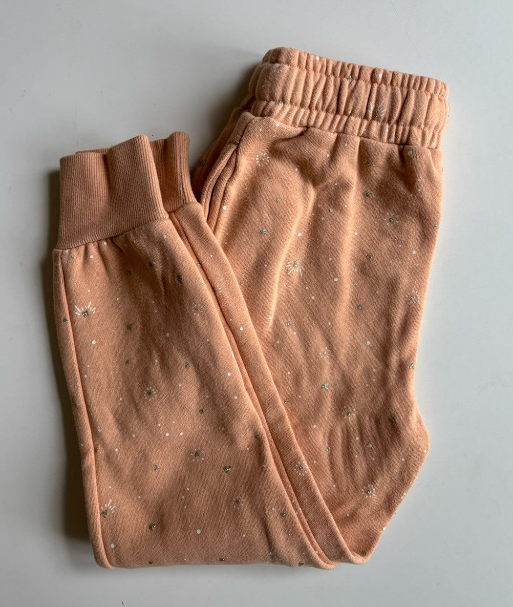 Cotton On Kids girls size 7 peach silver hearts tracksuit pants, VGUC