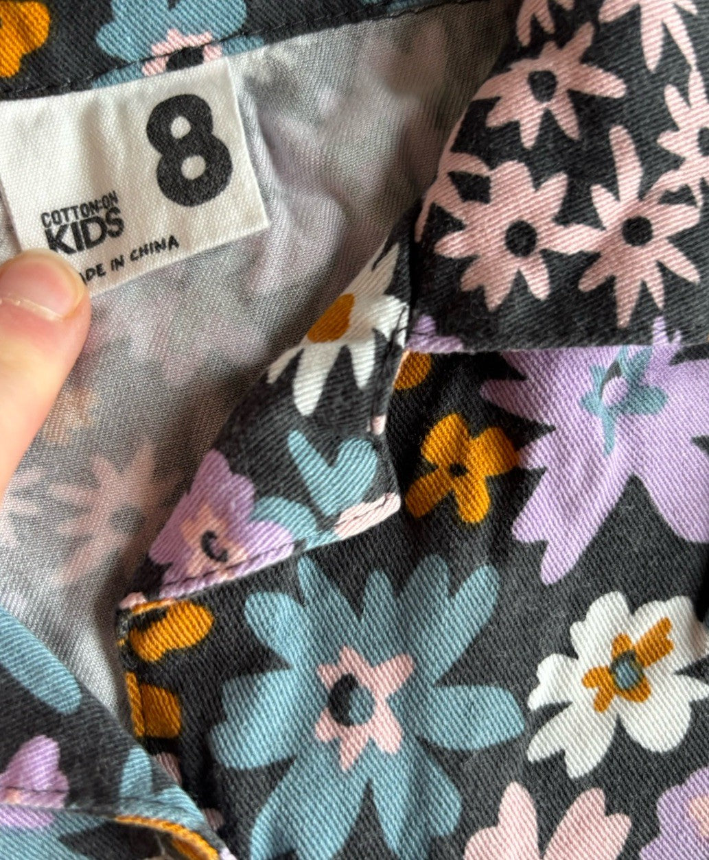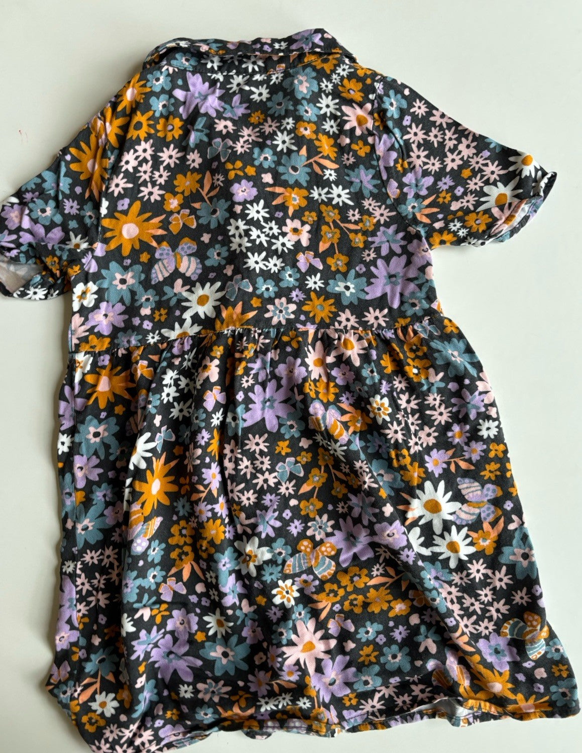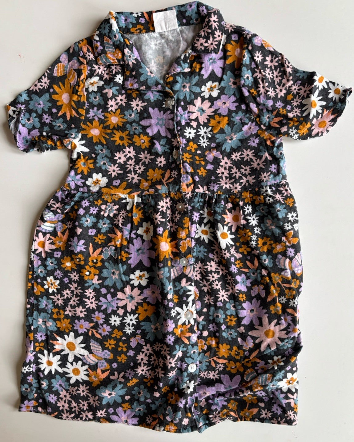 Cotton On Kids girls size 8 black colourful floral shirt dress, VGUC