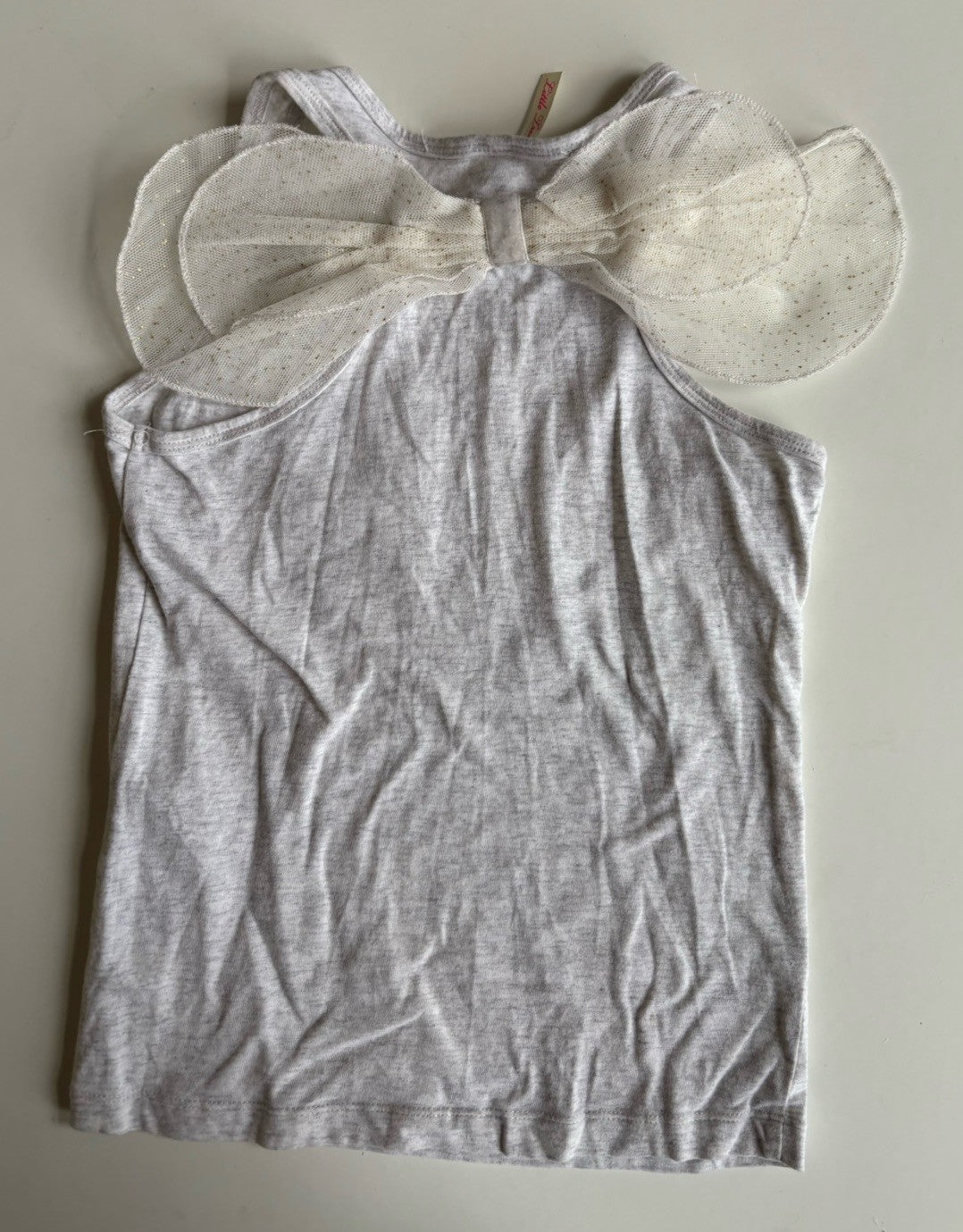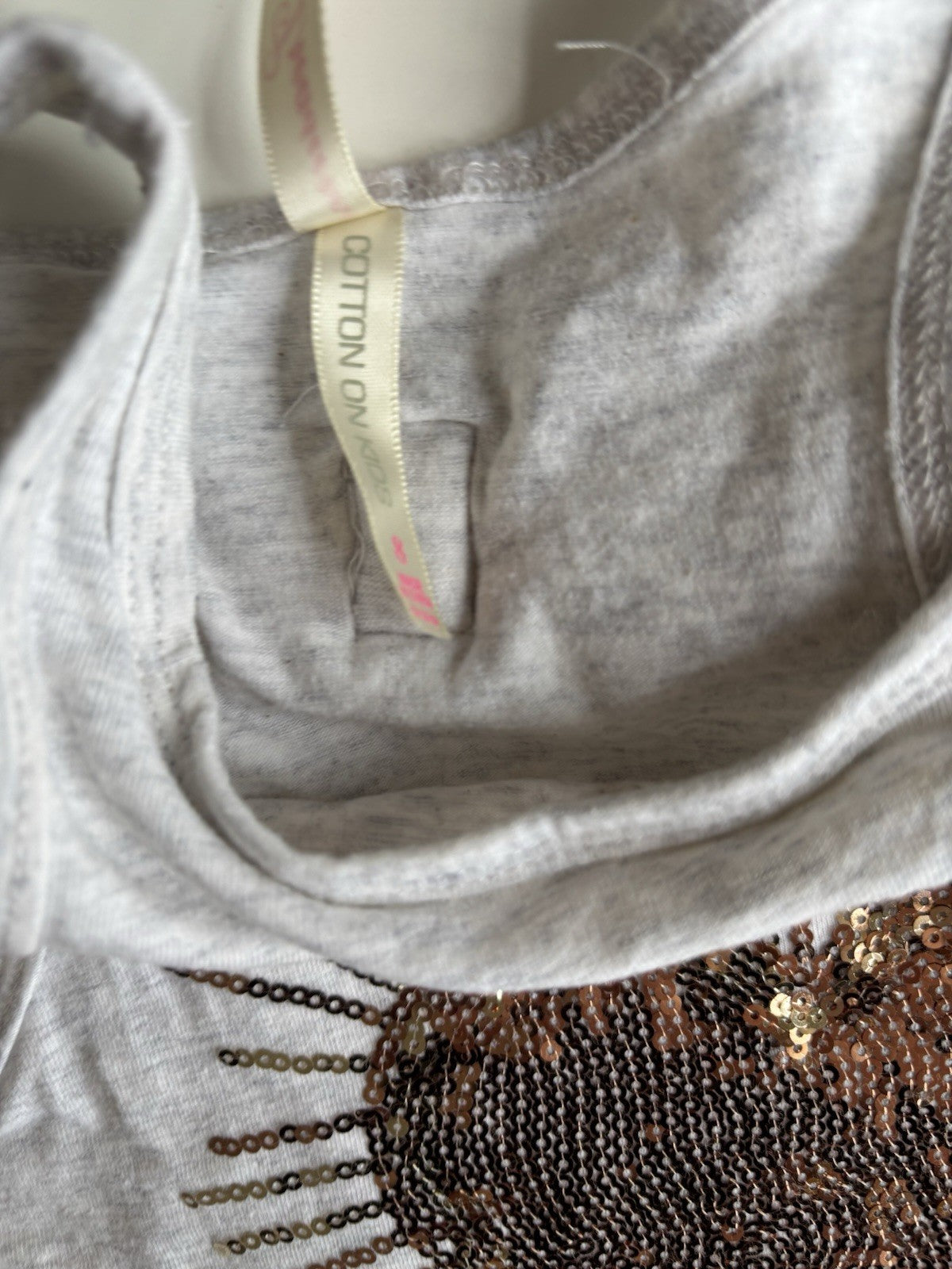 Cotton On Kids girls size 8 grey gold sequin heart sun wings top, VGUC