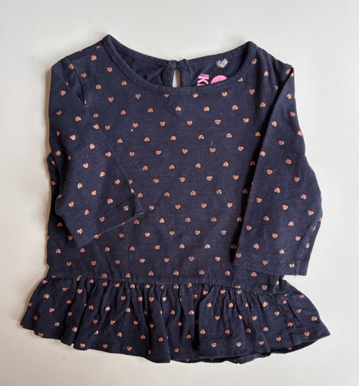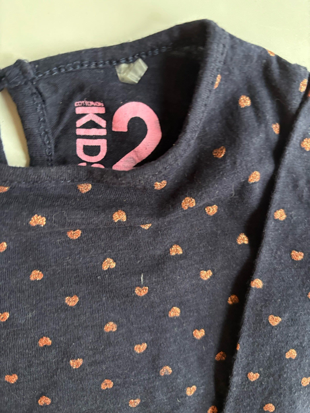 Cotton On Kids girls toddler size 2 navy blue gold hearts flounce top,